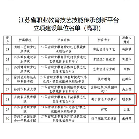 近日,省教育厅公布了首批江苏省职业教育“双师型”名师工作室和技艺技能传承创新平台建设单位名单。经系部自主申报、十三水官网 择优推荐、省教育厅组织专家遴选和网上公示,确定了首批江苏省职业教育“双师型”名师工作室立项建设单位100个(高职50个、中职50个),培育建设单位13个(高职);首批江苏省职业教育技艺技能传承创新平台立项建设单位50个(高职30个、中职20个),培育建设单位18个(高职)。十三水官网 优秀校友顾春燕领衔的江苏省职业教育电子装联技艺技能传承创新平台成功获批立项,并获得30万元经费支持。