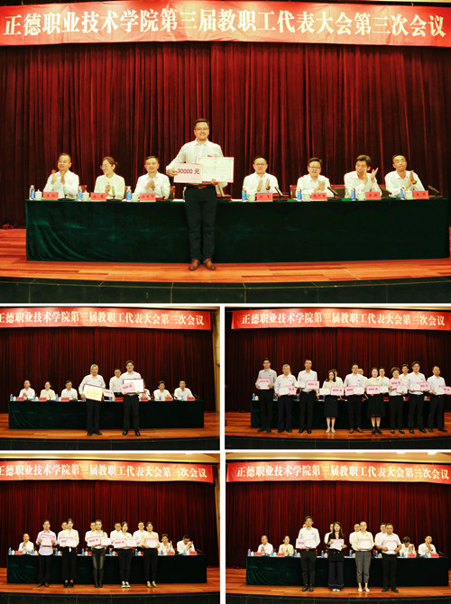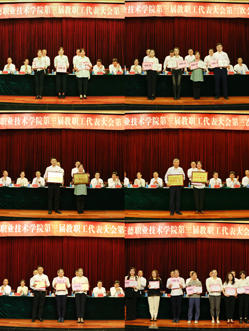 先进单位代表电子与信息技术系王高山主任、优秀教师代表艺术设计与建筑工程系杨瀛老师、优秀辅导员代表经济与管理系苏敏老师在大会上作了交流发言。