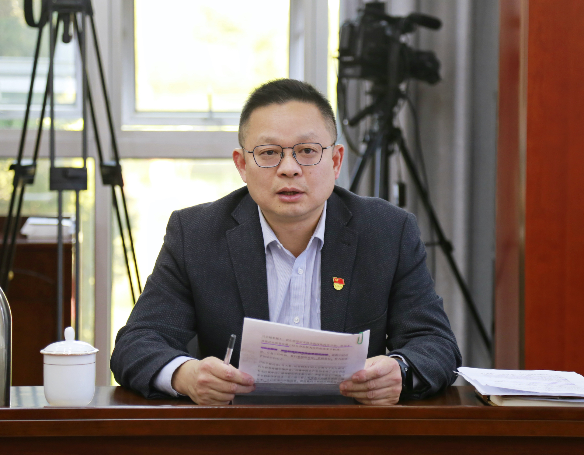 会上,参会人员观看了中国共产党第二十次全国代表大会闭幕会的视频报道,在孙雷的带学下集体学习习近平总书记在闭幕会上重要讲话精神,中国共产党第十九届中央委员会第七次全体会议公报,以及习近平总书记在二十届中共中央政治局常委同中外记者见面会上的重要讲话精神。