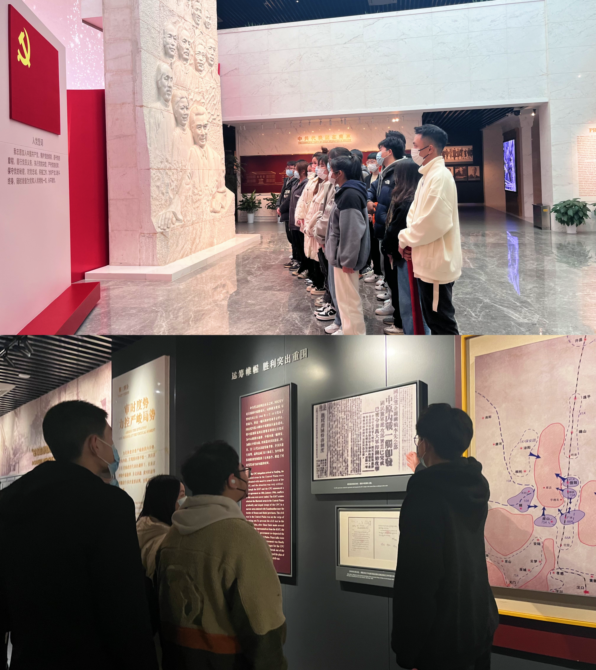 为了更加了解党的历史,感悟党的初心,赓续红色基因,2月16日下午,汽车与机电工程系优秀学生青年干部学生代表,赴梅园新村纪念馆进行参观学习。