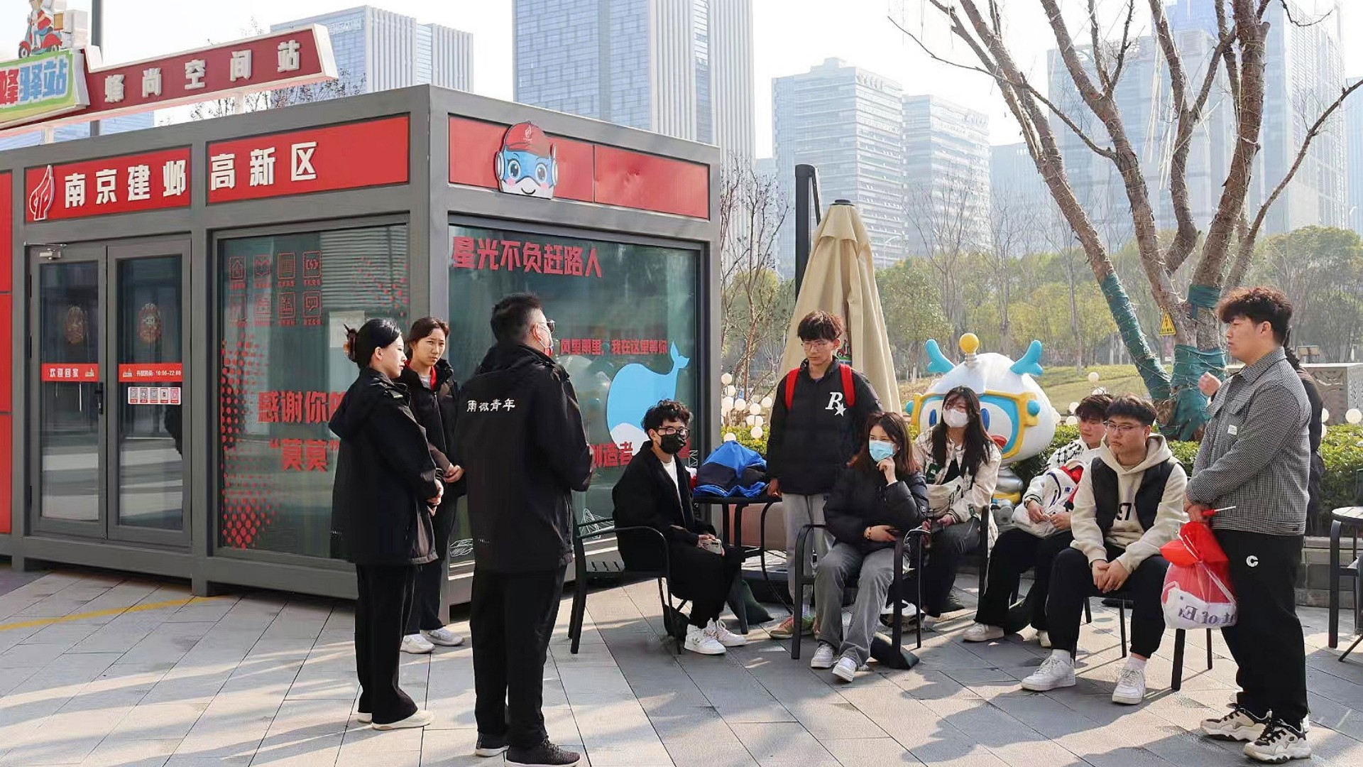 "快节奏城市里的慢节奏"。相关负责人给学生们进行了详细的介绍,志愿服务驿站的服务对象主要是外卖员、快递员、公路养护员、建筑工人等等,让大家在繁杂工作之余,能停下脚步、放松心情。驿站着力解决户外劳动者遇到的实际问题,为他们打造“温馨港湾”。
