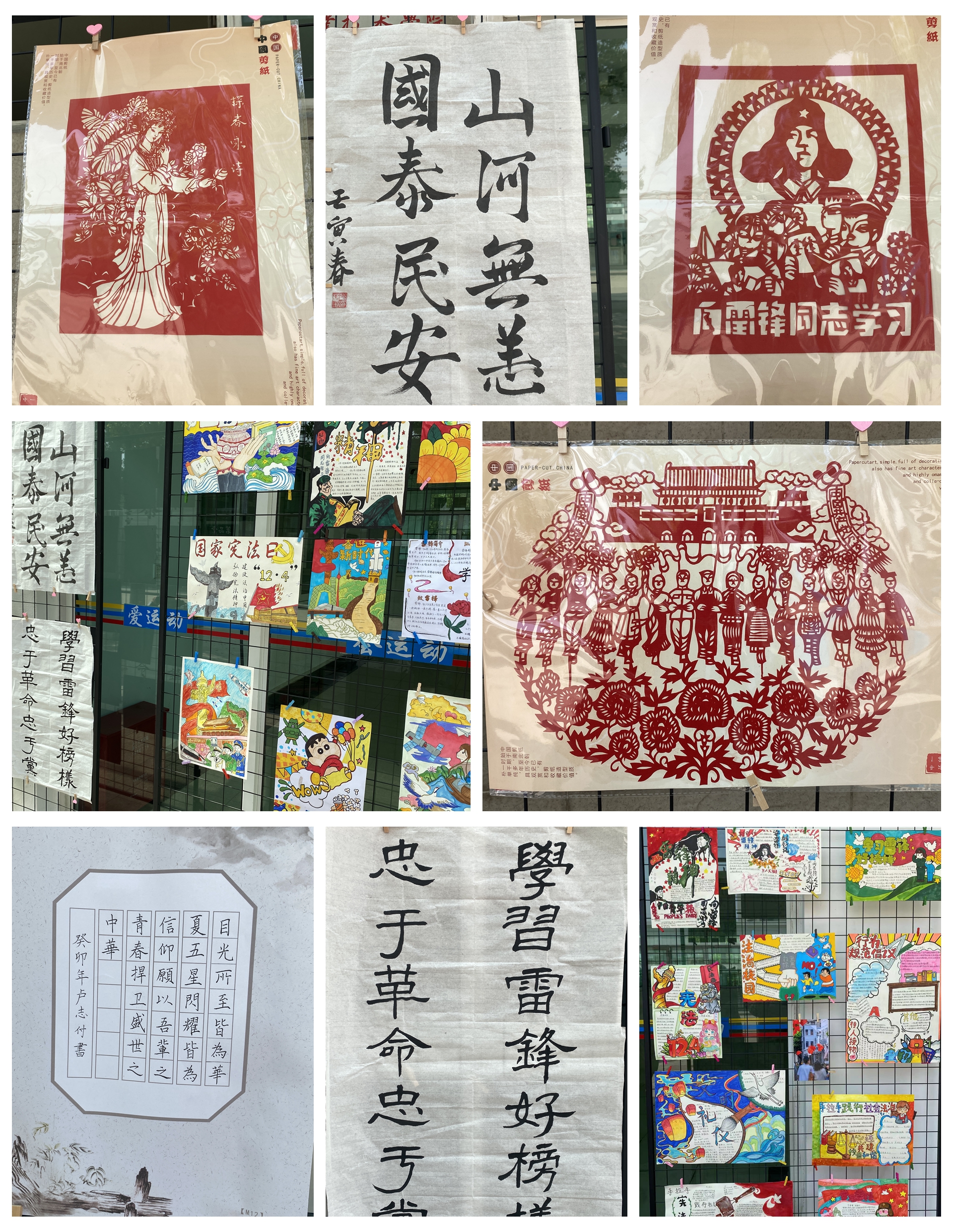 本次展览作品有书画作品、小报制作和特色剪纸。多元素的艺术碰撞给人们带来不一样的观赏感觉,书法中的笔锋、绘画中的色彩、剪纸中的工艺,在作品的线条与色彩之间,展现了基础教育系学子在艺术探索时的思索与顿悟,艺术创造时的快乐和激情。