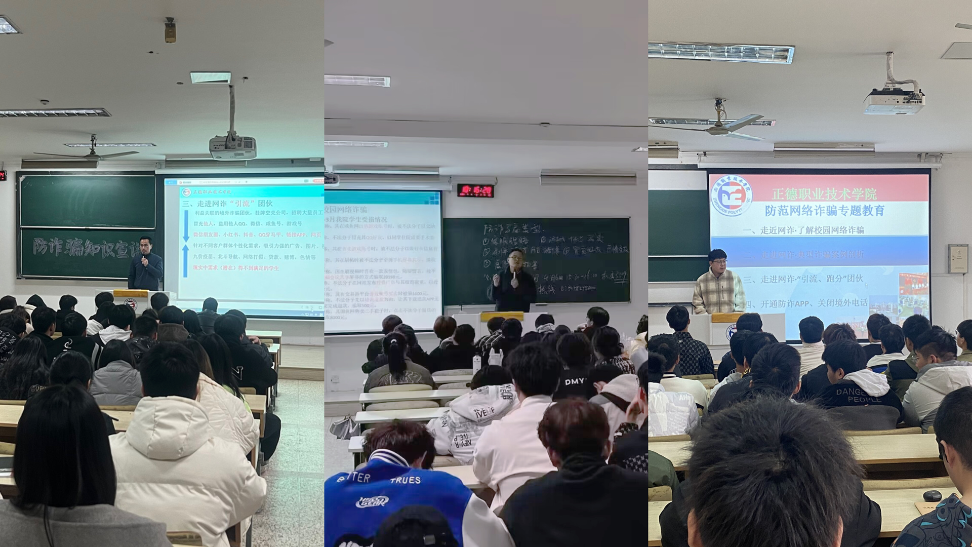 在校生开展为期一周的每日反诈骗宣传主题班会,班会以高校诈骗案件较多的案情分析为主,分析诈骗的手段和预防的方法。进一步引导学生认清了电信诈骗的严重危害,更深刻地了解了诈骗手段,增加了学生的预防电信诈骗的知识,增强了同学们的防诈骗意识,提高了大家自我防范能力,自觉远离和抵制电信网络诈骗,共同筑牢预防电信诈骗安全防范的堤坝。