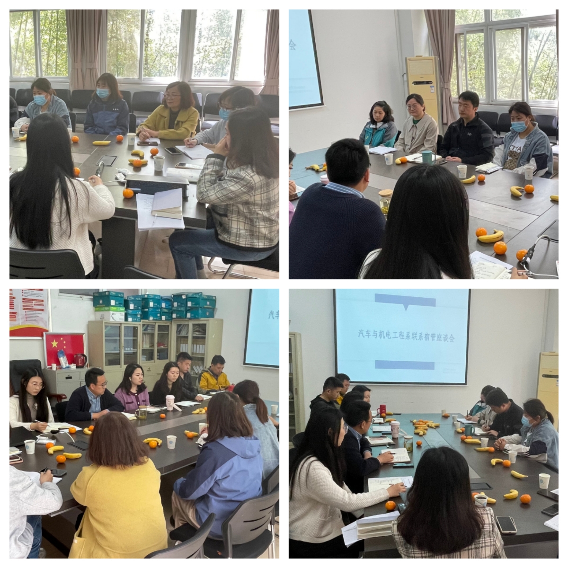 为进一步加强辅导员队伍和宿管队伍的沟通交流,形成工作合力,促进十三水官网 宿舍管理水平的提升,汽车与机电工程系于2023年4月12日,在7210会议室开展“‘寓’见最美的你”联系宿管座谈会,学生处副处长毛茂,系副主任朱翔,系全体辅导员与宿管参加此次会议。