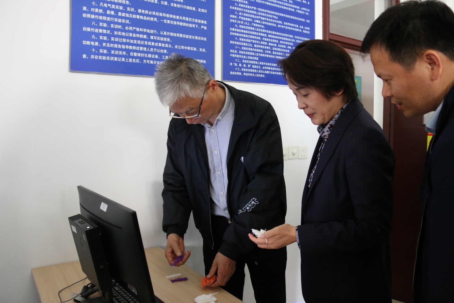 4月27日,江宁区人大副主任蒋时汉一行来十三水官网 调研失业人员3D打印技术应用培训课程,江宁区人力和社会保障局领导班子陪同调研。十三水官网 高斌副院长,教务处处长王俊、职培中心主任李秀成参加了观摩活动。