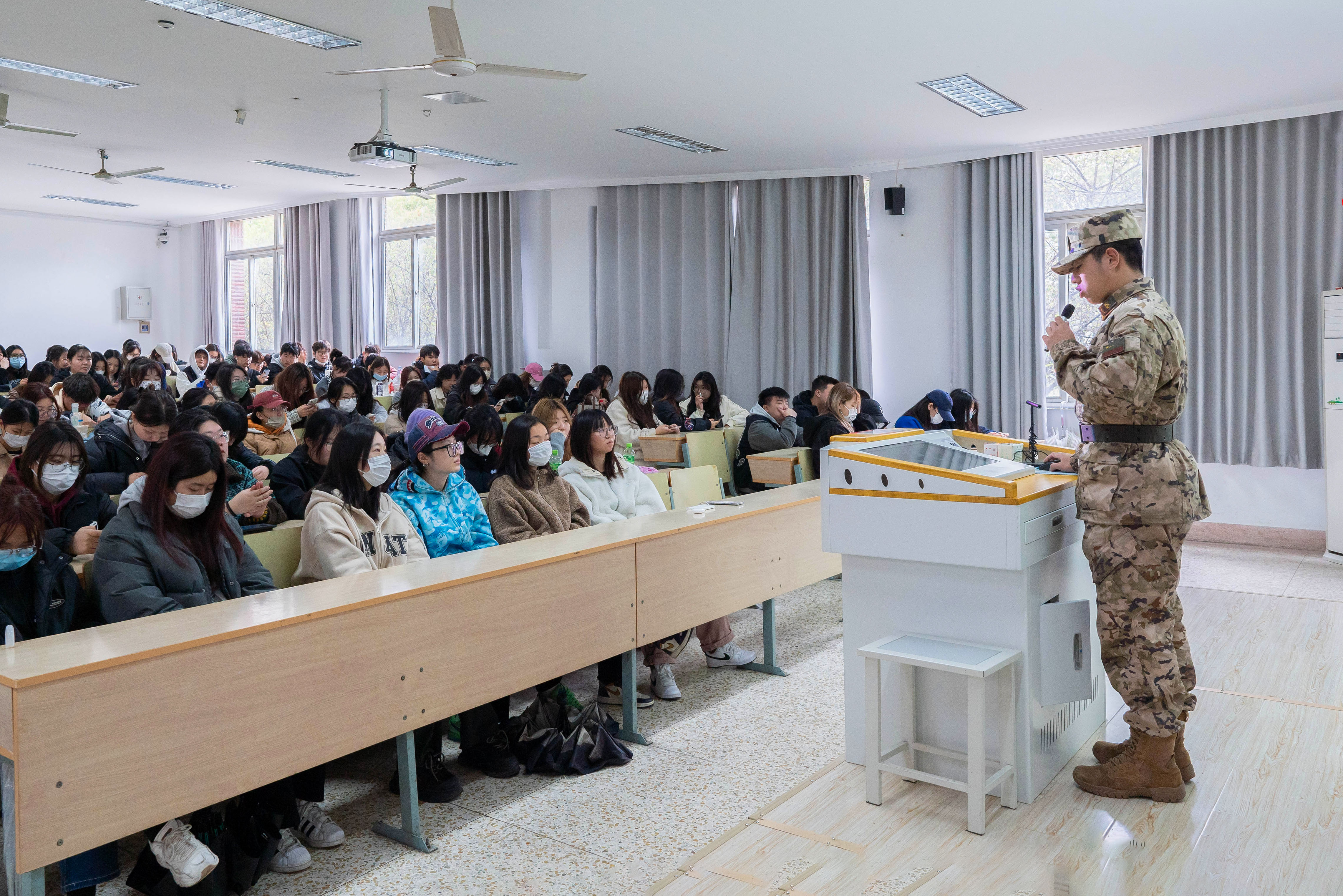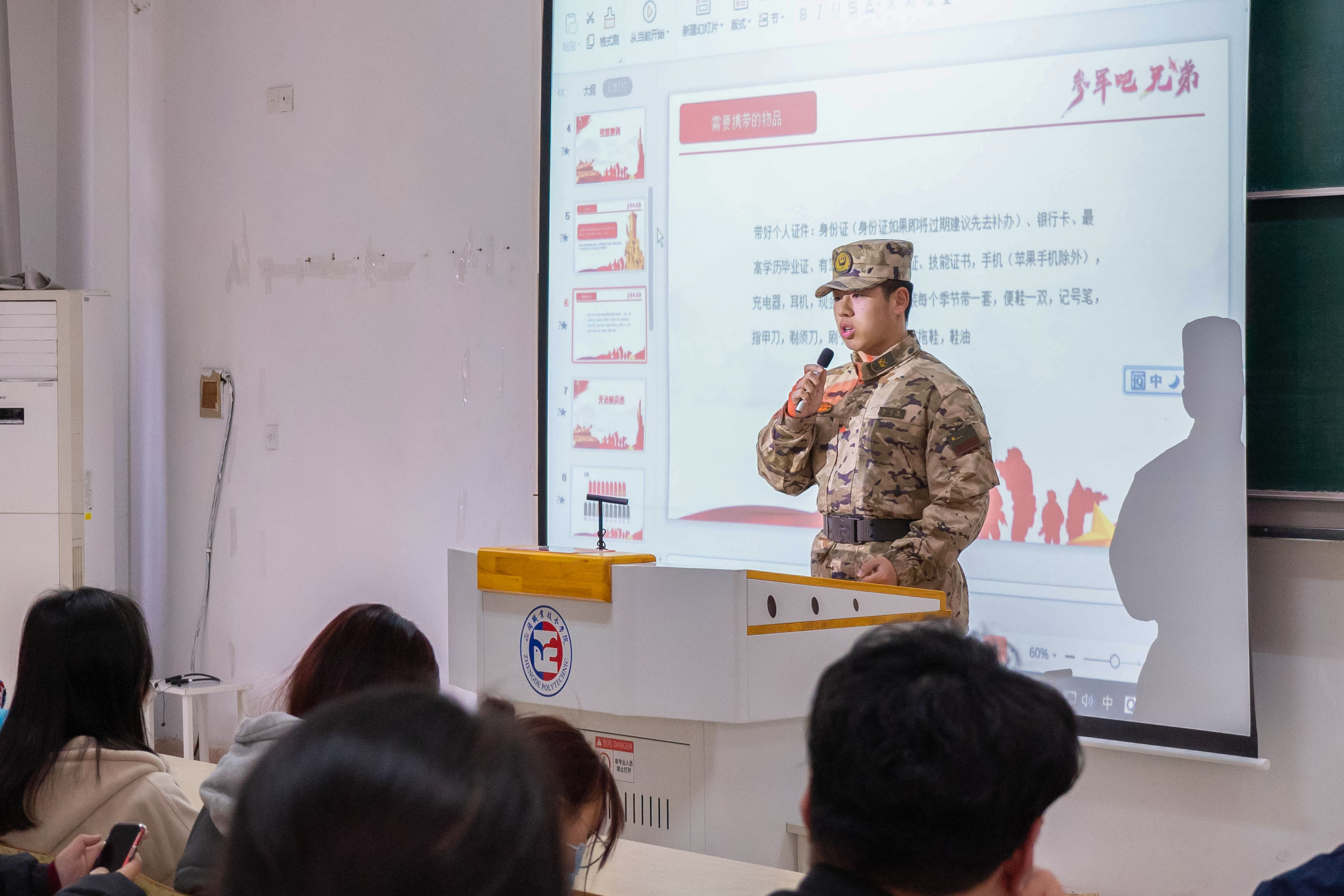 鲍刘城同学从报名方式、入伍的标准、役前集训、开启新兵连、下连生活等方面依次介绍了自己的军营生活。他通过一张张图片为大家描述了退伍时的不舍与留恋,希望学弟学妹们能积极响应国家征兵政策,在军营中锤炼品质、奉献青春。