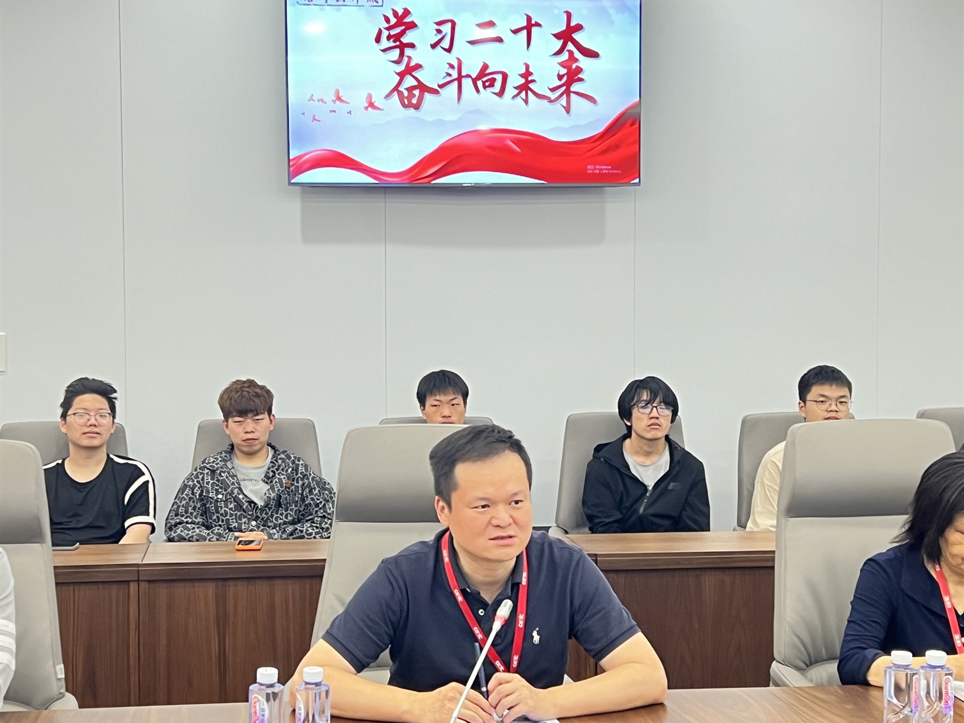 随后,企业优秀共产党员、军品工艺平台负责人师建行给同学们带来了一堂“学习二十大、奋斗向未来”的信仰公开课。师建行工程师从微组装工艺研究切入,结合自身求学及成长经历,讲述了自己从一名普通工人成长为“企业青年领军人才培养计划”一员的事业发展历程。他勉励青年学子把握正确方向,结合专业所长,通过实习实践,保持锐意进取的态度、发扬脚踏实地的精神;树立正确的就业观、择业观,将“小我”融入“大我”,努力成为堪当民族复兴重任的时代新人。