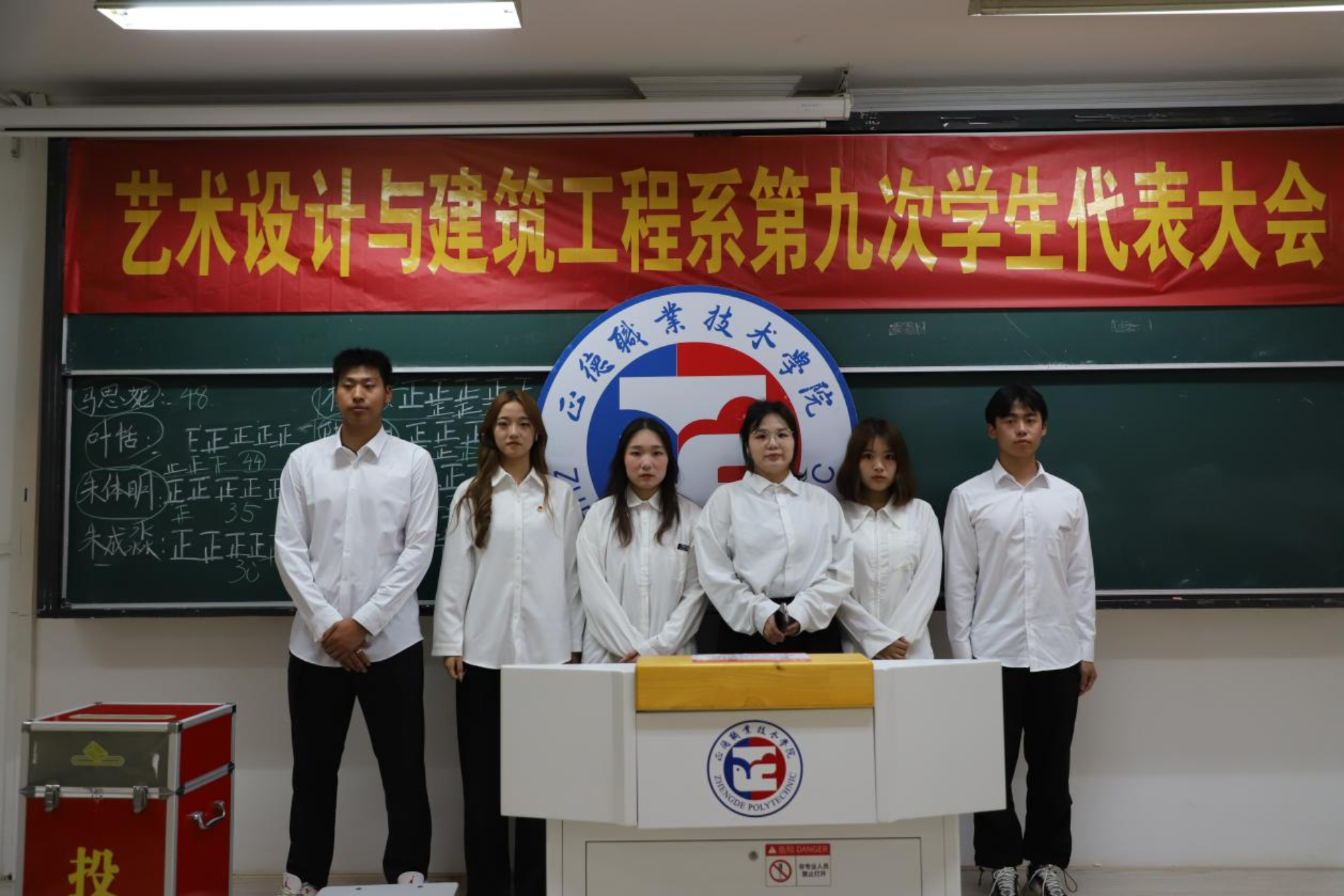 大会下半段由艺术设计与建筑工程系学生会主席周宇先进行工作汇报,然后宣读《关于艺术设计与建筑工程系第九届常任委员会工作报告决议(草案)》并且审议顺利通过。最后,大会开始选举新任的艺建系学生代表大会的常任委员会委员和新一届的艺建系主席团成员。
