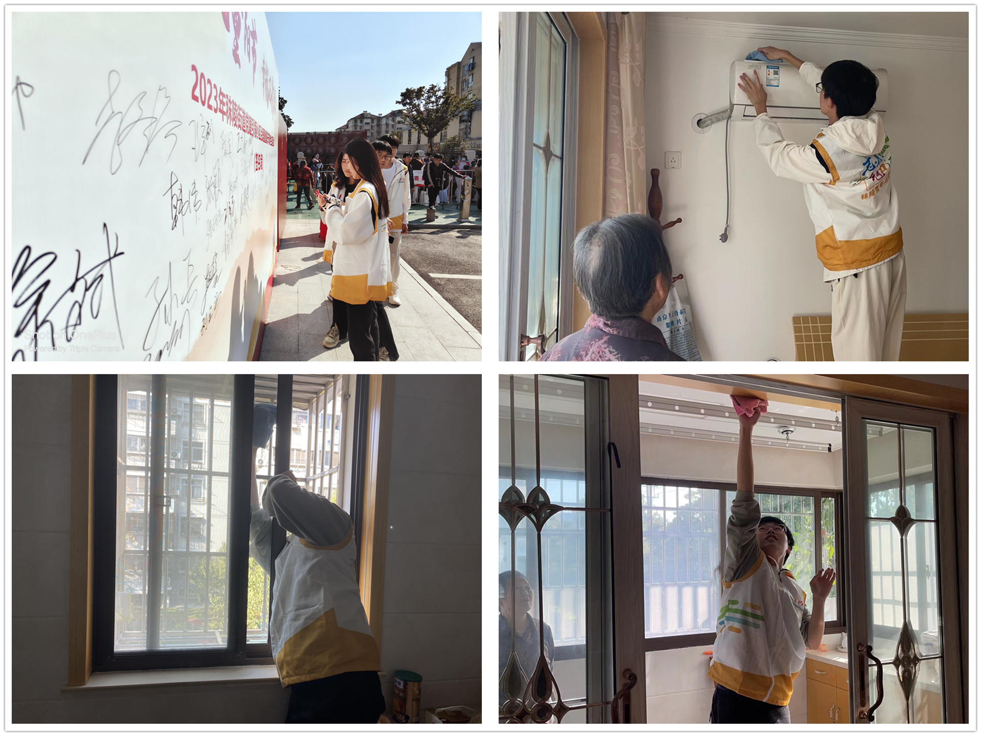 老人事,是大事,更是“大家事”。2022年11月以来,秣陵街道太平社区与电子与信息技术系共建“大学生志愿服务基地”, “奶奶好,我们是南京正德十三水官网 的大学生志愿者,帮您做家务”,带上扫帚、拖把,拿上棉质毛巾,志愿者与街道工作人员一同走进独居老人家中。来到卫生死角前,志愿者们拿起清洁工具,帮助社区老人进行清理。家住太平花苑的王奶奶看着家里原本满是污渍的空调室内机被擦得亮堂堂,不停地说着谢谢,为志愿者竖起了大拇指。