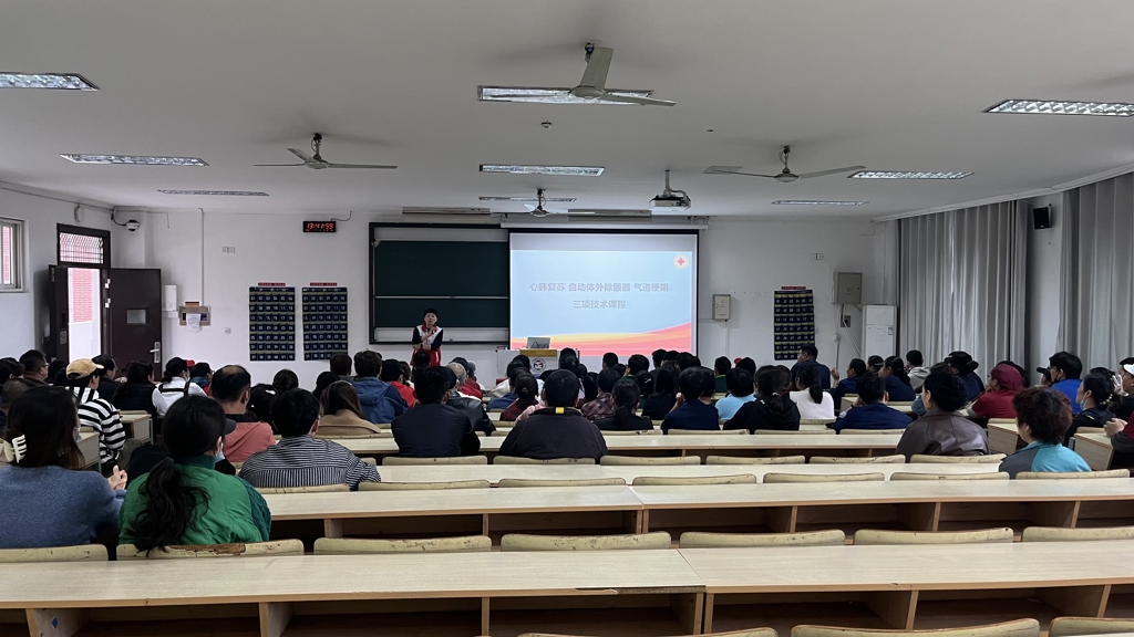 为深入学习贯彻习近平新时代中国特色社会主义思想和党的二十大精神,突出“我为群众办实事”实践能力,提升后勤社会化单位工作人员的自救互救能力,筑起校园保障坚强防线,11月9日下午,后勤处邀请江苏省五星级应急救护培训师、江宁红十字会培训导师张霞在教学楼1203教室开展急救知识及急救操作能力培训,物业、宿管、食堂、校内门面房等140余人参加培训。