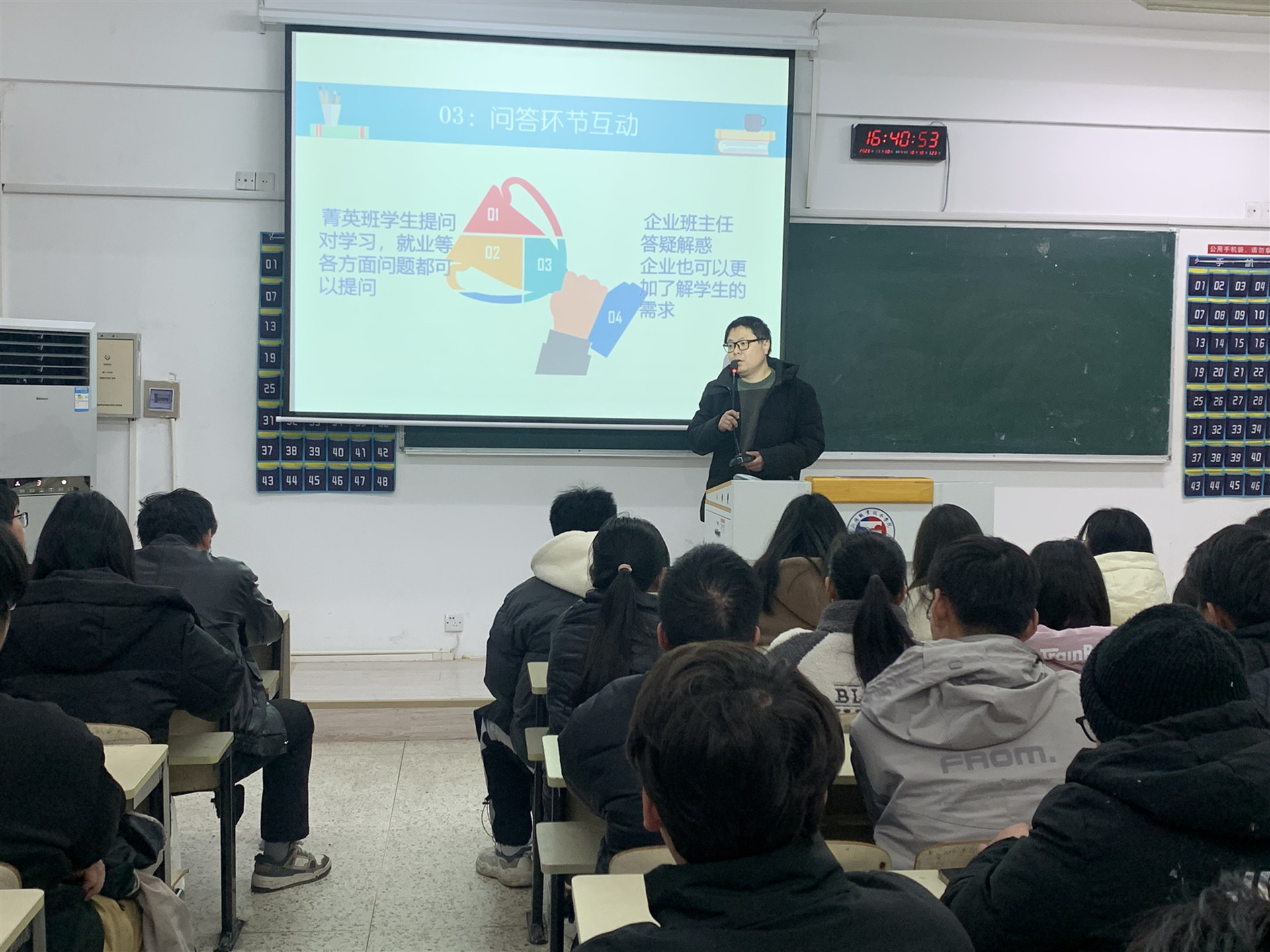 2023年11月30日下午,电子与信息技术系在教学楼2205成功举办计算机菁英班交流会。本次交流会旨在落实立德树人根本任务,优化人才培养方案,推进十三水官网合作 深层发展,提高学生的创新能力与实践能力。南京竹影数字科技有限公司总经理范玉峰、技术总监于华贵,南京锋云聚信息科技有限公司总经理张林炜应邀参加交流会,电子与信息技术系专任教师张韬、胡磊、陈锦锦、余爱华、苏娜,辅导员王雯等全程陪同交流。交流会由陈锦锦主持。