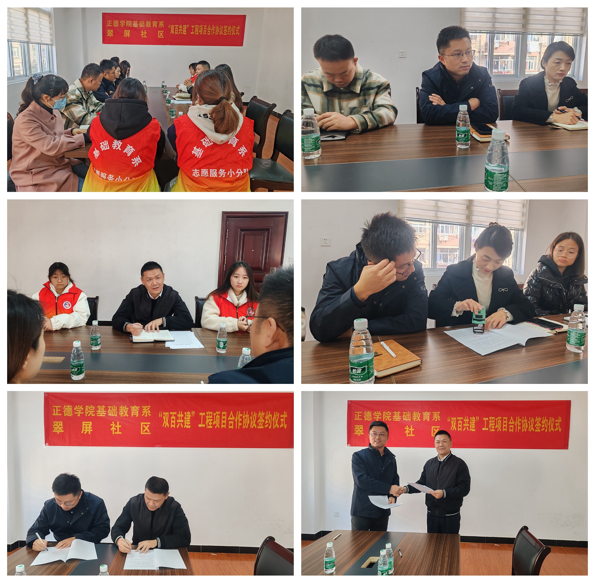 为探索新时代高校与地方共青团组织结对共建新模式,进一步深化实践育人工作,增强大学生社会实践活动实效,推动共青团实践育人工作高质量内涵化、常态化、长效化发展。11月24日上午,基础教育系党支部书记包毅带领辅导员刘婧以及骨干学生前往翠屏社区进行“双百共建”工程项目签约仪式。翠屏社区党委书记尚征瑞、党委副书记芮希以及党委委员、团委负责人出席会议。