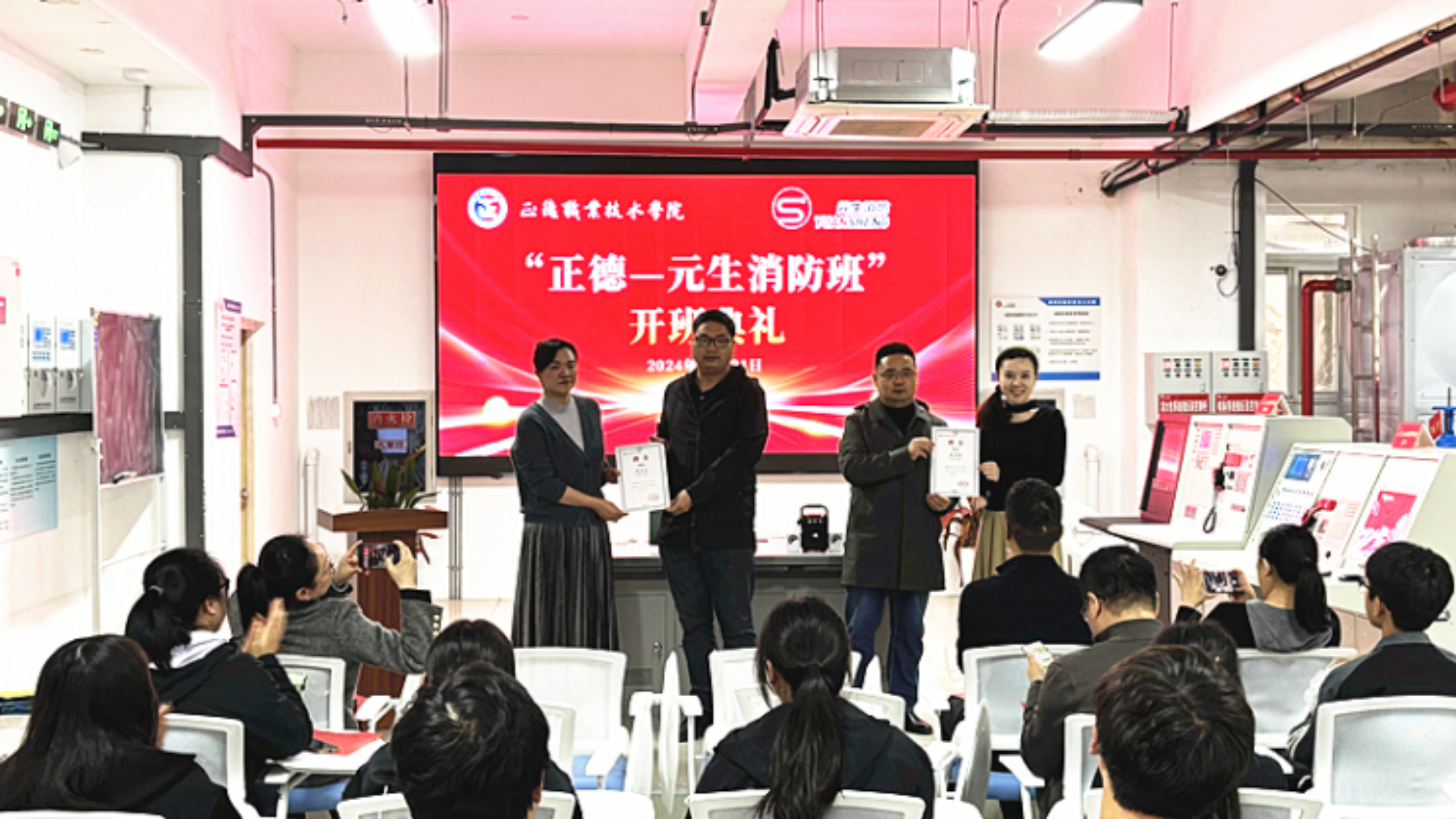 10月31日下午,“正德—元生消防班”开班仪式在正德-元生消防综合实训中心隆重举行。南京元生消防工程有限公司总经理刘臻、副总经理朱雯洁等企业代表、十三水官网 院长助理、招就处处长王墀、汽车与机电工程系系主任任丽君等老师出席活动。典礼由汽车与机电工程系系副主任虞骏卿主持。