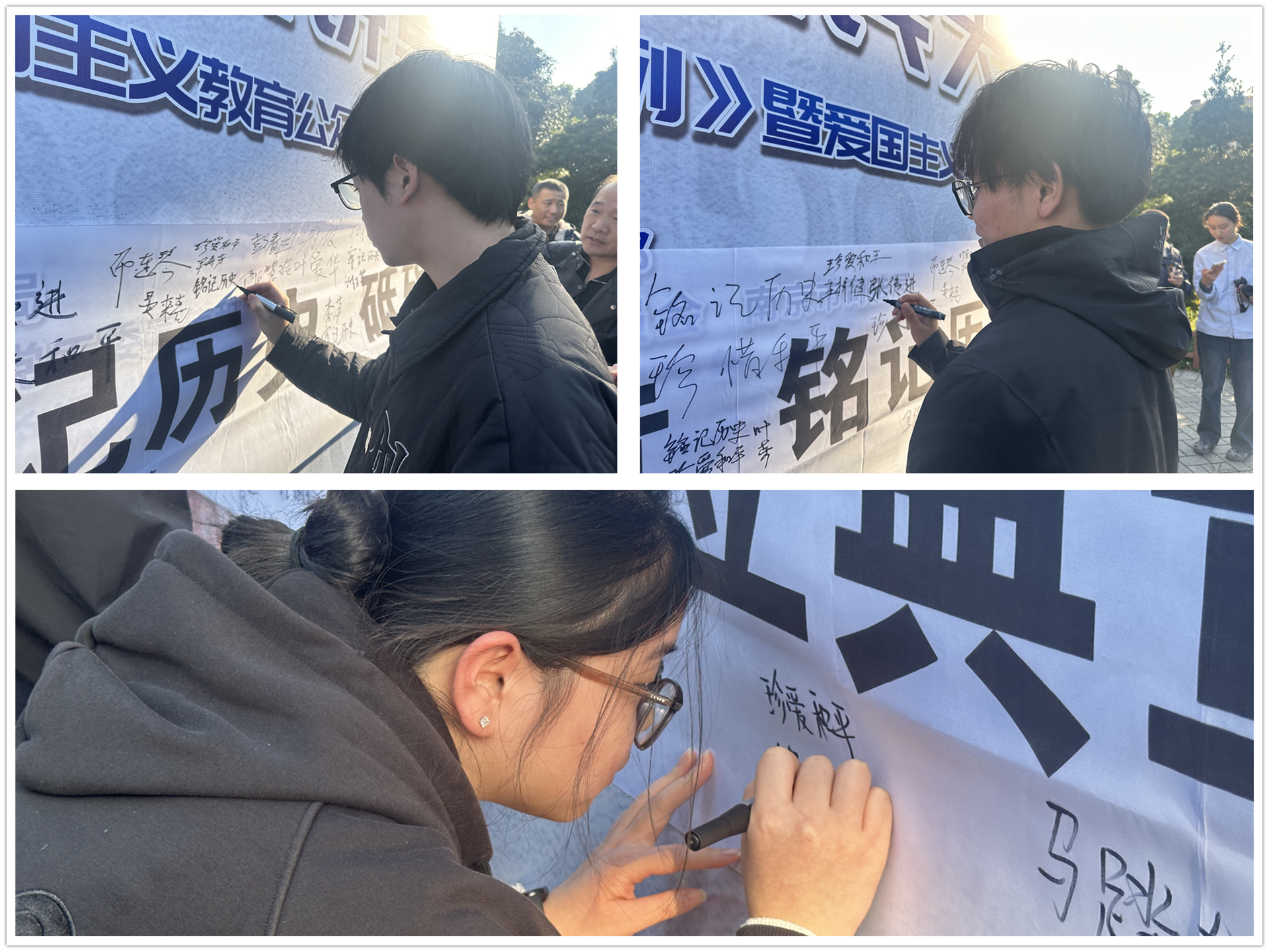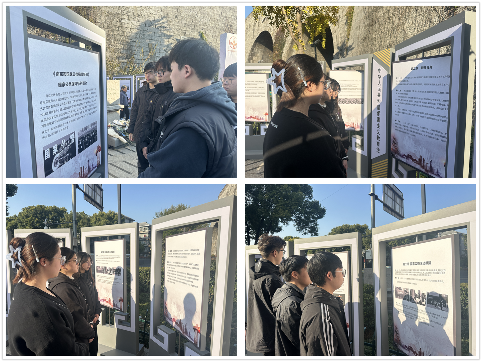 默哀结束后,同学们来到活动展板旁,认真学习《南京市国家公祭保障条例》的相关内容。在学习过程中,学生们加深了对条例的理解,也进一步增强了法律意识和爱国情怀,更加坚定了维护国家尊严和民族记忆的决心。