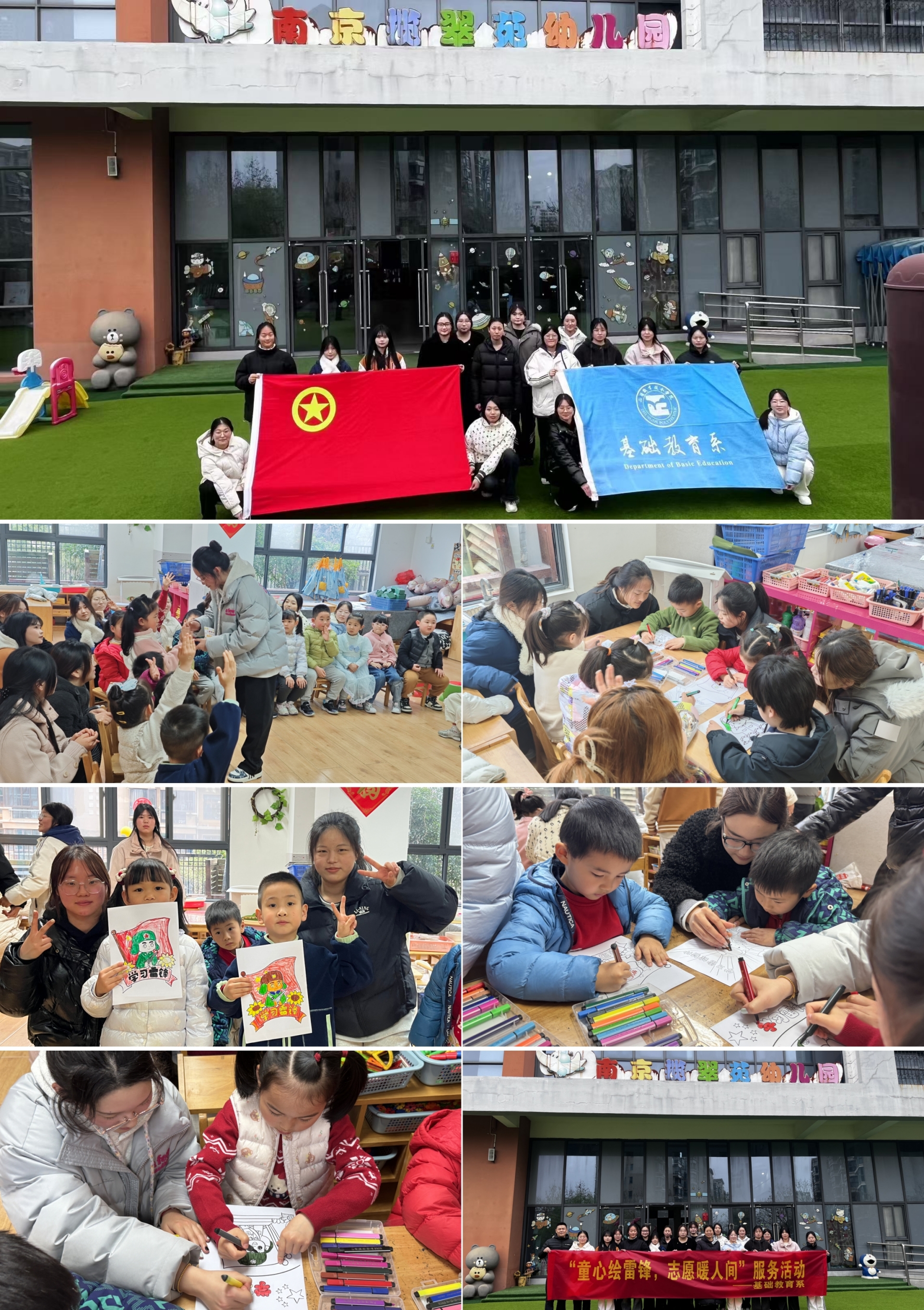 基础教育系组织学生走进南京揽翠苑幼儿园开展“童心绘雷锋,志愿暖人间”主题彩绘活动,活动开始前,志愿者们以色彩斑斓的绘本和活泼有趣的动画视频为开端,让孩子们在轻松愉快的氛围中,重温雷锋的光荣事迹。随后,志愿者们引导小朋友们拿起纸笔,用画笔描绘他们心中的雷锋形象。在这场互动中,不仅让孩子们了解雷锋事迹,感受雷锋精神,还能在实践中培养幼儿的动手和审美能力。未来,基础教育系将继续以饱满的热情,秉持着“奉献、友爱、互助、进步”的志愿服务精神,为十三水游戏 和社会贡献更多的青春力量。