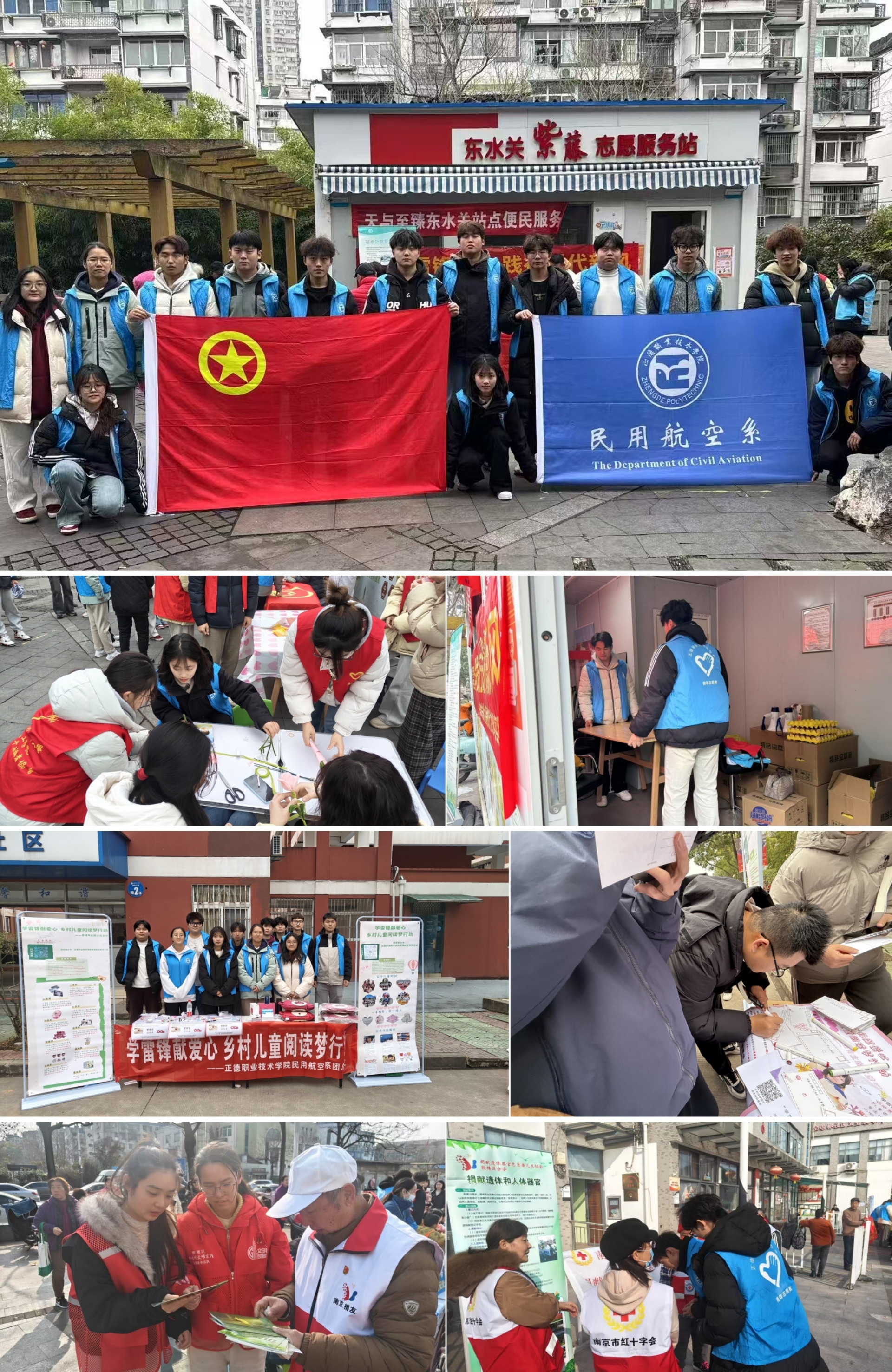 民用航空系组织学生在校内外开展了一系列学雷锋志愿服务活动。志愿者与南京市红十字会携手,在鼓楼区金陵二村通过讲解公益政策,倡导大爱无疆的社会风尚,鼓励更多人加入到公益志愿者的行列中,为需要帮助的人带去希望;在夫子庙街道东水关社区,志愿者们以扭扭棒为媒介,将温暖与美好传递给每一位居民,让社区变得更加温馨美丽;在校内“学雷锋献爱心,乡村儿童阅读梦”活动中更是将这份爱心延续至远方,师生们在明信片上写下对乡村儿童的关怀与鼓励,随同书籍一起寄出,为乡村儿童的精神世界点亮一盏明灯。