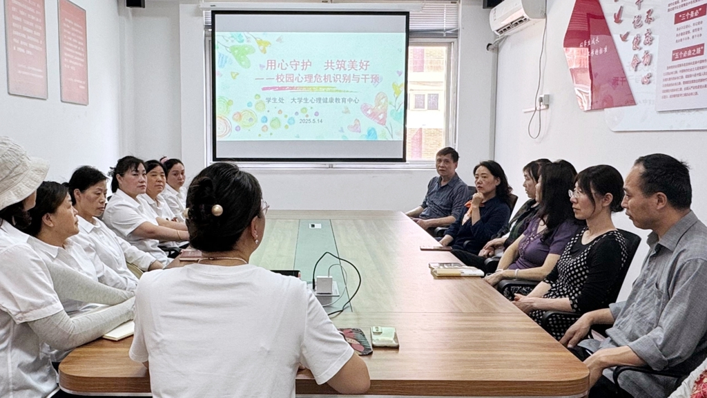 为进一步提升宿管员对学生心理危机的识别与干预能力,筑牢校园心理健康防线,5月14日上午,学生处大学生心理健康教育中心在2207会议室举办了“校园心理危机识别与干预”专题培训会。本次培训会由心理中心教师樊荣主讲,学生处副处长何华智主持会议并作总结讲话,心理中心教师宗佳及全体宿管员参加了本次培训会。