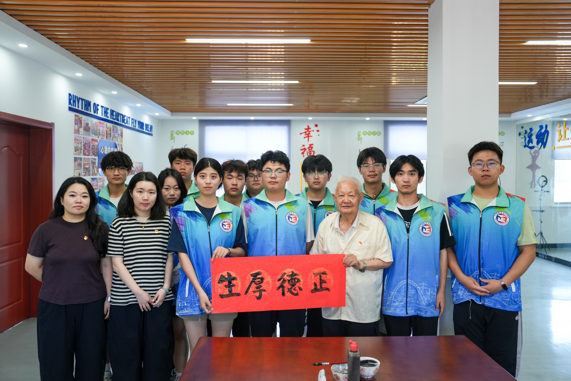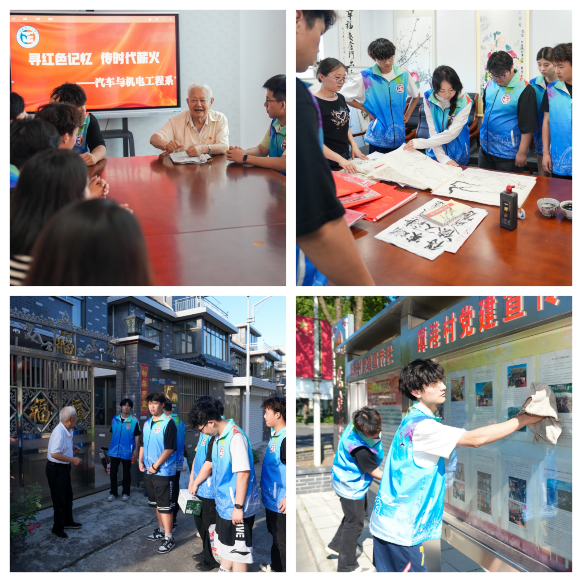 在全国文明村海安市高新区谭港村,实践团队实地学习乡村振兴与精神文明建设经验。有着40年党龄的曹爷爷结合亲身经历给志愿者们讲述在海安这片土地上的抗日历史,重点回忆新四军陈毅部队黄桥战役事迹,激发大家的爱国情怀,并现场题写“正德厚生”毛笔字。