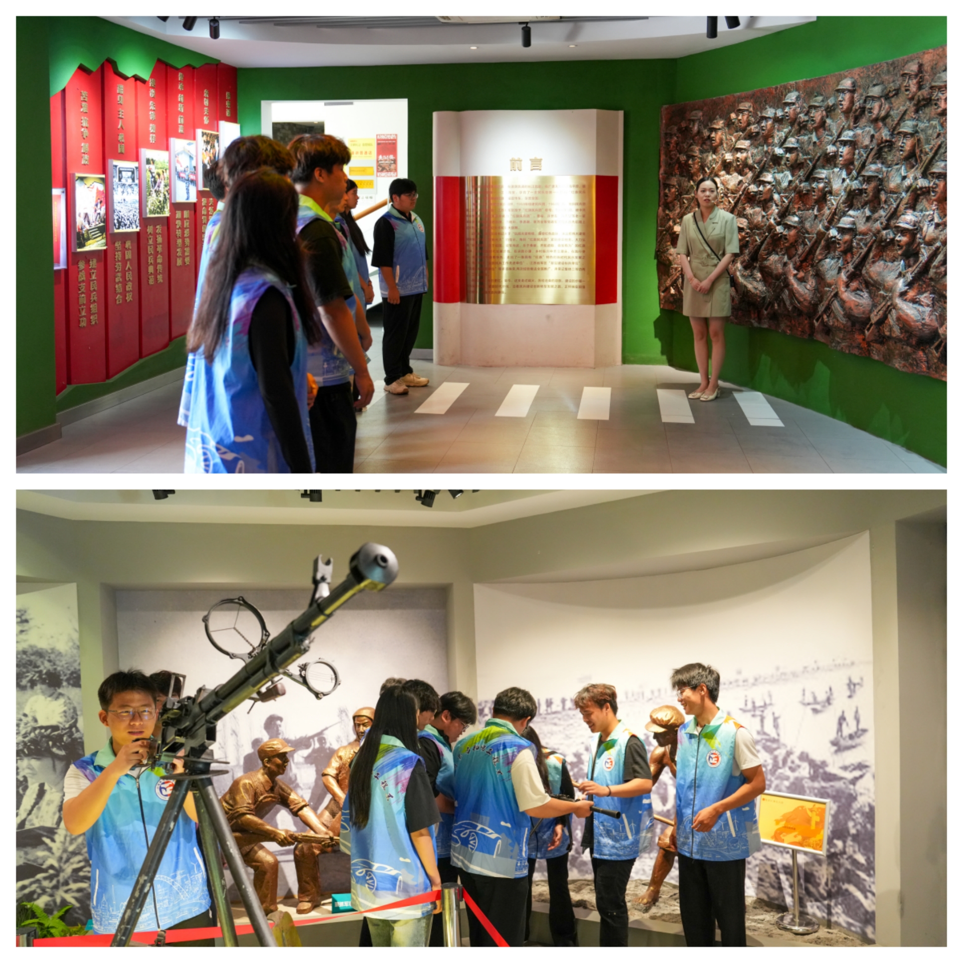在角斜红旗民兵团史绩陈列馆,沿着荣誉长廊,实践团队感受着角斜民兵团的光辉历程。从“神炮手”曹莲凤女炮班5发5中震惊全军的传奇,到民兵“一手拿枪、一手拿锄”的劳武传统,一个个鲜活故事让成员们深刻体会到“听党指挥、爱军尚武”的精神内核。