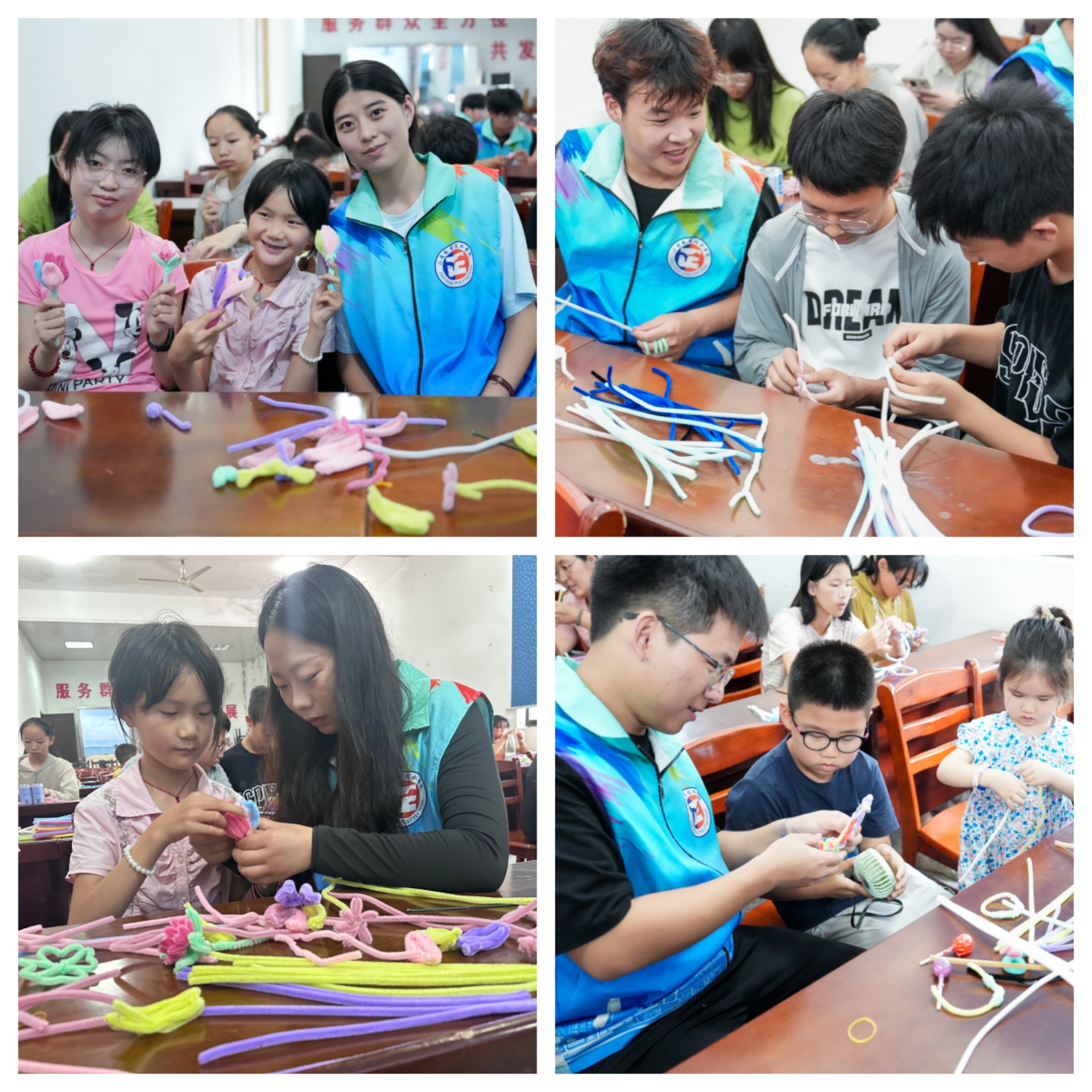 实践团队走进江苏海安墩头镇千步村,开展“情牵留守、爱暖童心”暑期社会实践活动。通过知识问答、手工课堂、爱心捐赠等形式,为留守儿童提供情感陪伴与成长支持。成员们用诗词大会、成语接龙等小游戏点燃了现场的气氛。扭扭棒创意手工制作引来了小朋友们热情参与,彩色扭扭棒在指尖翻转,变成了栩栩如生的花朵、动物、眼镜等手工艺品,孩子们脸上的纯真笑容与志愿者的耐心指导交织成温馨画面。活动尾声,志愿者给孩子们准备了“爱心文具包”,鼓励孩子们不畏困难,勇敢追梦。
