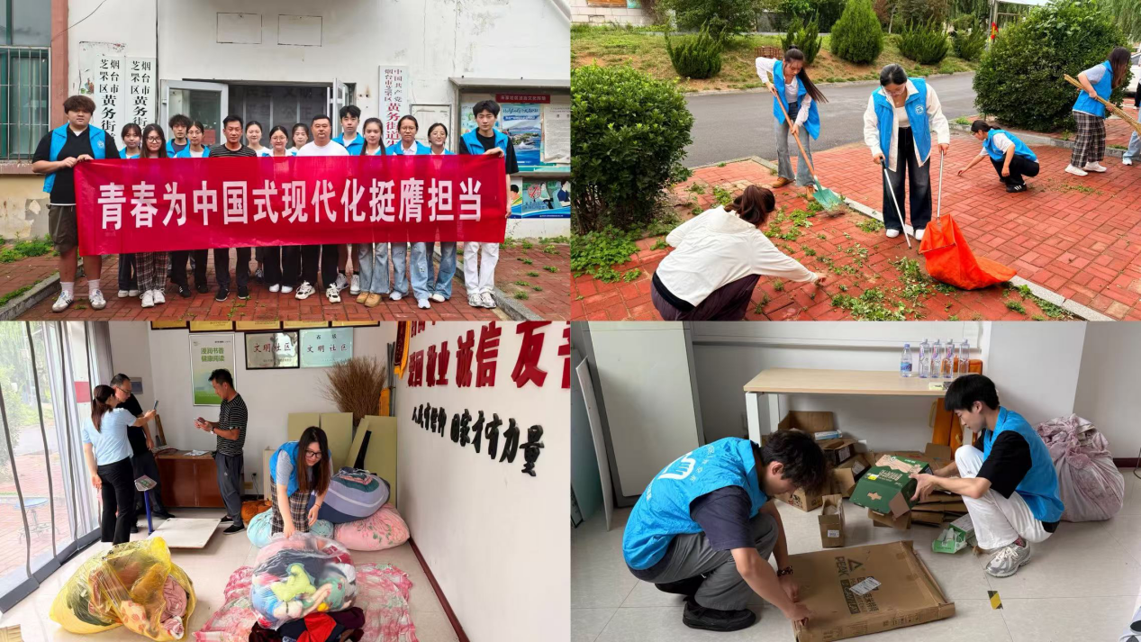 实践团队与烟台市黄务街道朱家社区还联合开展了“旧衣焕新 温暖传递”主题旧衣回收活动。成员们耐心地向居民讲解活动内容,并仔细分类、打包捐赠衣物,千余件闲置衣物在后续也将被分批次地送往有需要的困难群体手中。大家还手持工具,在社区绿化带间拔除杂草、清理垃圾,为社区换“新颜”,用实际行动践行“奉献、友爱、互助、进步”的志愿精神,也为社区环境美化贡献了力量。