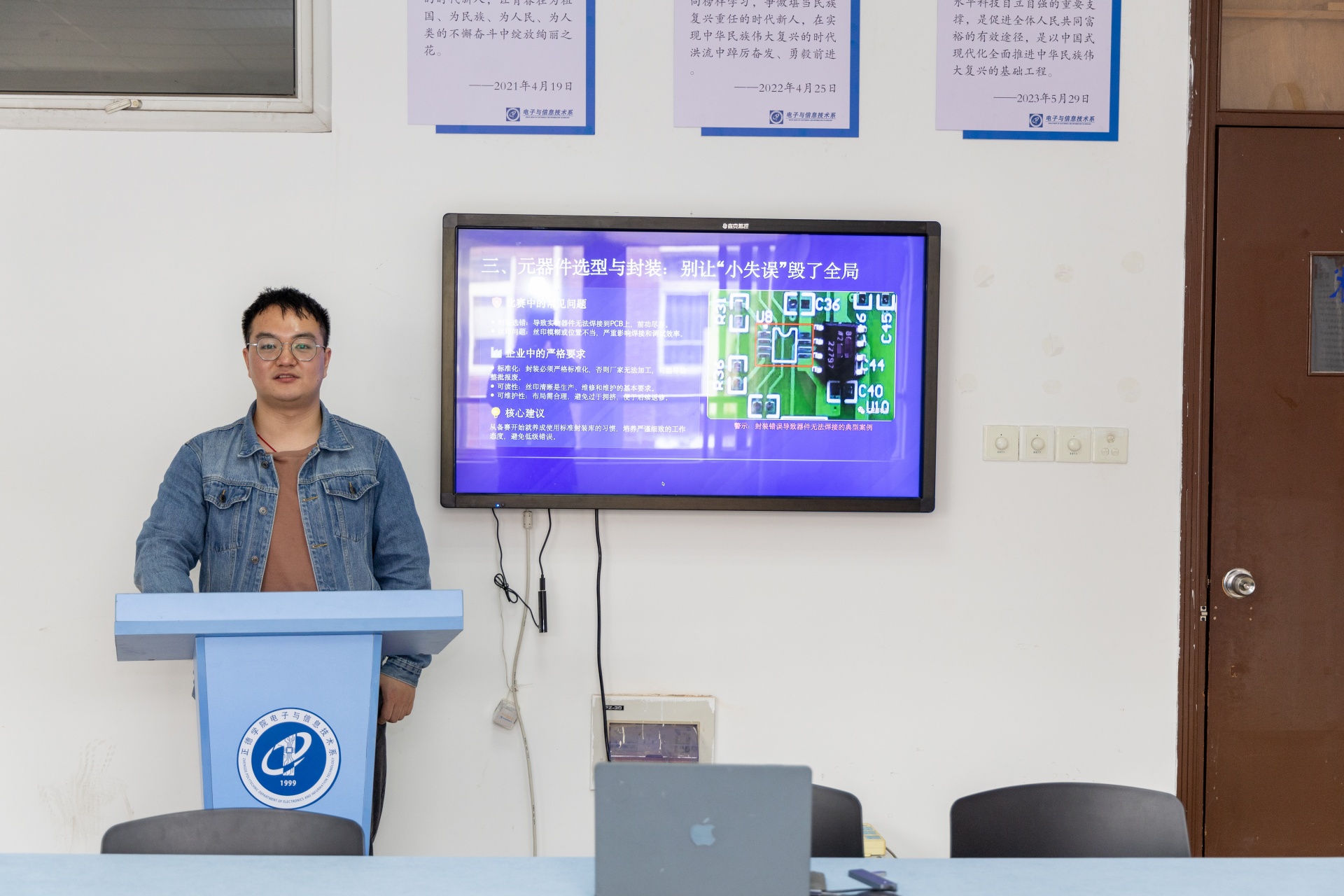 为充分发挥优秀校友的榜样引领作用,助力参赛学生全力备战第十七届蓝桥杯大赛电子类赛事,3月26日,电子与信息技术系特邀2024届优秀毕业生、南京国博电子股份有限公司电子工程实验中心设备仪器室组长戴立志返校,开展以“PCB设计的工程思维与职业价值”为主题的交流活动。本次活动分为经验分享与实验指导两个环节,分别在6407会议室和电工电子实验实训室进行。电子与信息技术系党支部书记、副主任赵欣,电子信息工程技术专业负责人戴慧、专业教师王丹、辅导员李兰香,以及来自EDA设计与开发、单片机设计与开发两个赛项的20余名学生参与活动,活动由戴慧主持。