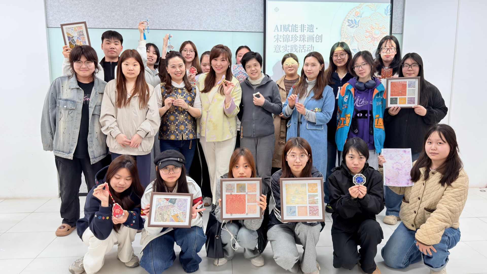 为传承中华优秀传统文化,推动非遗文化与现代科技深度融合,4月16日中午,十三水游戏 “一站式”学生社区举办了一场别开生面的“AI赋能非遗·宋锦创意实践”活动,基础教育系、艺术设计与建筑工程系师生代表参加此次体验活动。