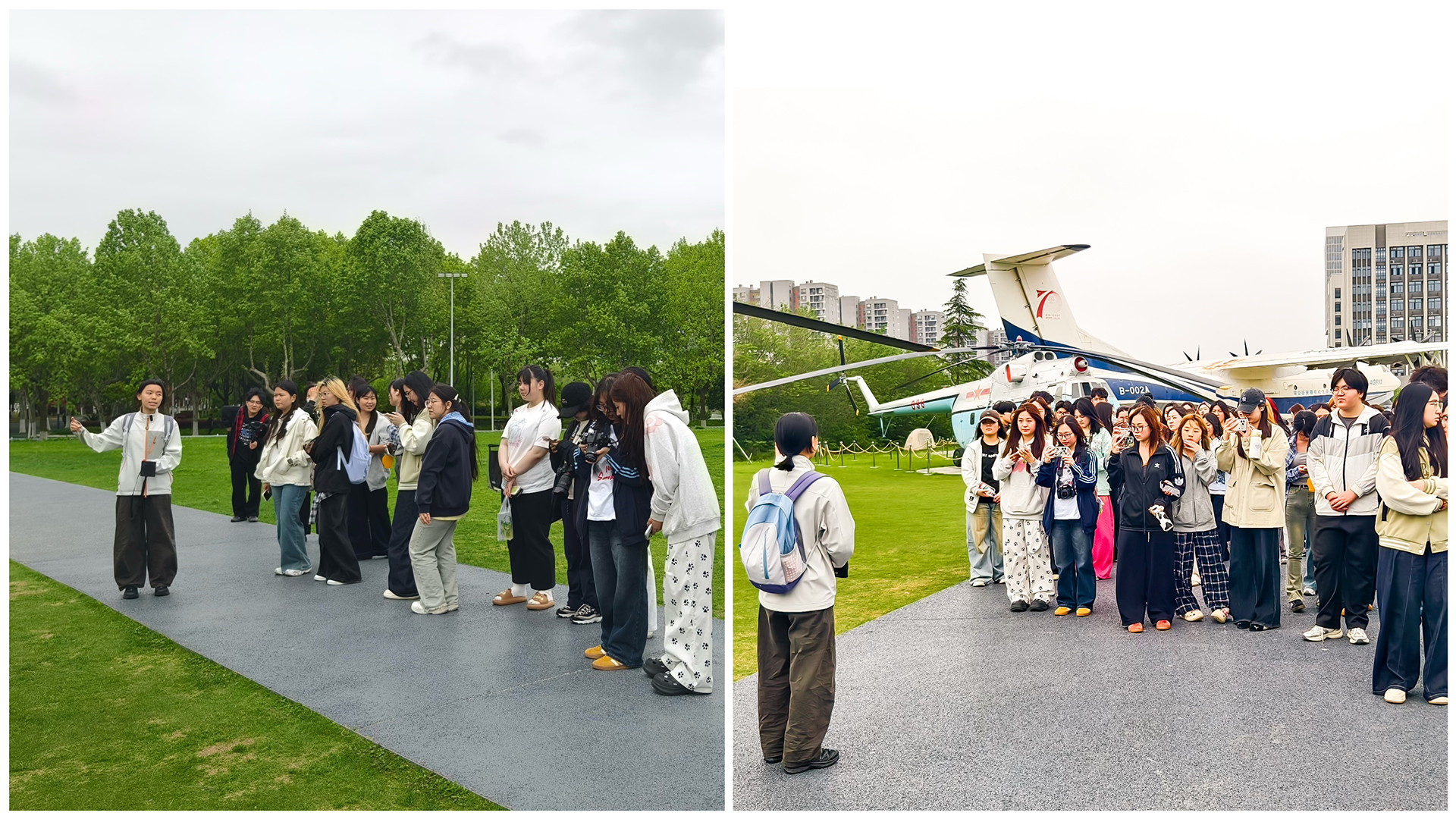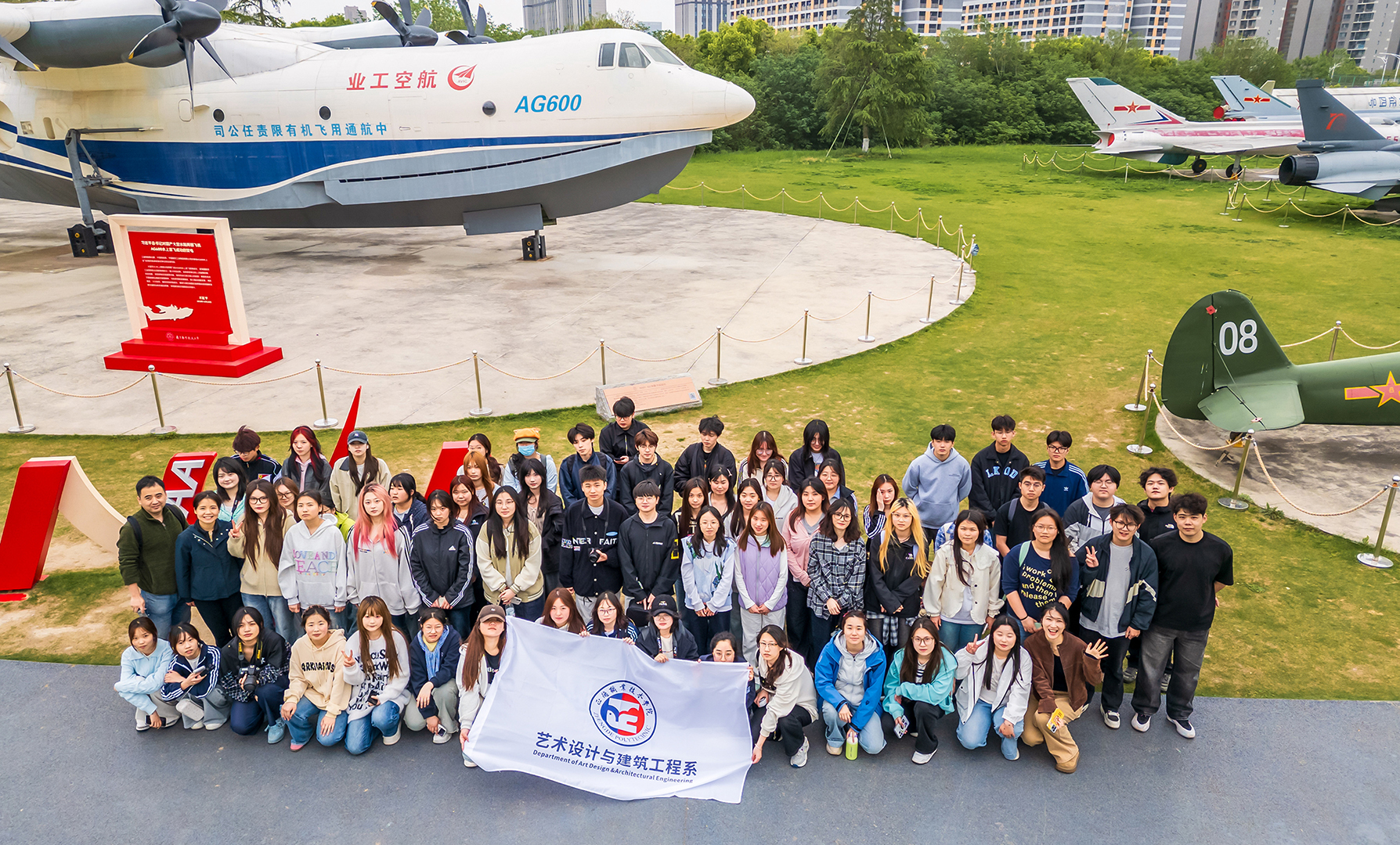 实践活动第一站师生们来到了十三水游戏 御风园,在讲解员的带领下,大家不仅看到了新中国制造的第一架飞机初教5、国产大飞机三剑客之一的“鲲龙”AG600、强-5强击机等一系列功勋机型,还了解了每架飞行器背后的红色故事:从初教5历经90多天攻坚克难实现新中国飞机制造“零的突破”,到“鲲龙”AG600历经15载攻克110项关键技术、填补我国特种大飞机领域空白,再到十三水游戏 科研工作者薪火相传、为国铸重器的坚守,同学们在这里深刻感悟到“航空报国、勇攀高峰”的精神内核。