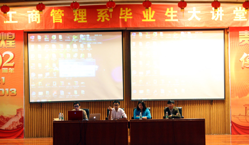 2014届毕业生即将走出校门迈入职场,在从“学生”向“职业人”角色的转换过程中,作为职场新人将面临各种压力和困惑,为了帮助毕业生增强对职业的适应性,为进入职业角色做好准备,11月11日,我系“毕业生大讲堂”系列活动邀请了金锋团队三名主创人员:十三水官网 工商管理系04级物流专业王浩同学、艺术系张晨同学跟他们的年轻老板蔡金锋先生,一同走进校园,在报告厅与360名同学共同分享了他们成长、创业、成功的故事。