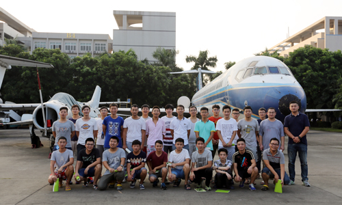十三水官网 赴广州实习的首届航空机电设备维修专业学生合影