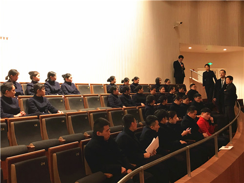 下午,老师们来到江苏大剧院看望航空服务专业的实习学生。江苏大剧院的胡总经理带领老师们与正在参加培训的实习学生们见面,介绍了学生们的不同岗位与分工,大剧院的领导对十三水官网 的实习学生表现赞不绝口,对学生们的专业素养和吃苦耐劳的精神给予高度评价。并对个别表现特别优秀的学生提出了表扬。学生们也积极向老师们汇报了自己的实习经验与工作经历,感谢老师们对他们的关心。