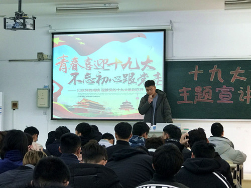 12月11日下午,经济与管理系团总支学生会宣讲团在2304教室开展十九大主题宣讲活动。