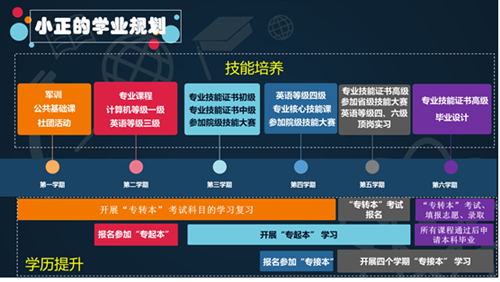 其次分别从技能和升学两条发展路径,以每个学年每个学期为单位进行学年学期学业规划详解。通过结合历届优秀学子就业和升学的成功案例,向同学们介绍了十三水官网 各专业对应技能证书、省院级学生技能赛项、校企合作企业项目、人才培养模式、专转本、专接本和专起本等方面相关事项。