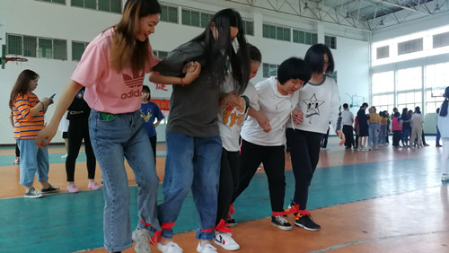在该系体育教研组教师和学生骨干的组织下,师生们分成三个大组共15个代表队,参加了鸭子赛跑、跳长绳与五人六足三个集体项目的比赛。各位老师率领自己的参赛队,团结协作,一争高下。比赛中,师生们有的出谋划策,有的积极参赛,有的服务保障,分工协作,各司其职。落后了,坚定地追赶;摔倒了,站起来继续前行;失误了,大家互相安慰鼓励,充分体现了团结就是力量的精神。呐喊助威声、欢笑声响彻整个运动馆。