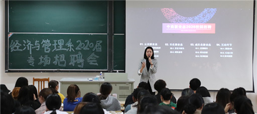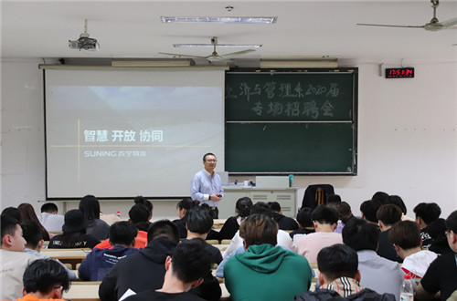 10月10日下午,经济与管理系2020届毕业生专场招聘会全面拉开帷幕,本次宣讲会邀请了苏宁云商、A.O史密斯和南京云中央科技有限公司三家知名企业。2017级全体学生参加此次活动。
