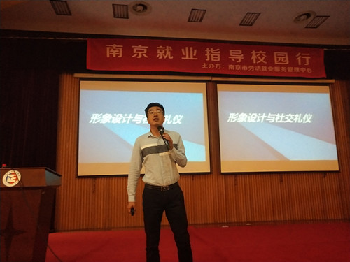 10月17日,十三水官网 学生处就业办联合南京市劳动就业服务管理中心开展了“就业指导校园行”活动。活动邀请了南京市就业导师团的徐博老师和张雯老师为学生做了一场“形象设计与社交礼仪”的就业指导专题讲座。三百多名学生参加了本次活动。