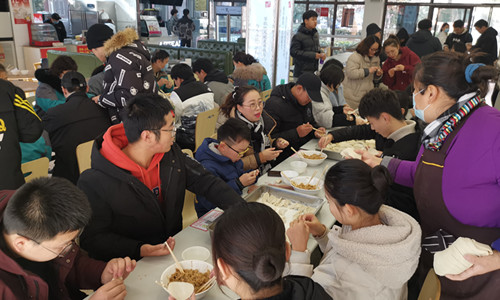 为欢度元旦、喜迎新年,1月2日,学生处在一食堂开展师生迎新年包饺子活动。副院长任慈、学生处全体与导师制所联络学生、宿管员代表、辅导员代表一同参与此次活动。