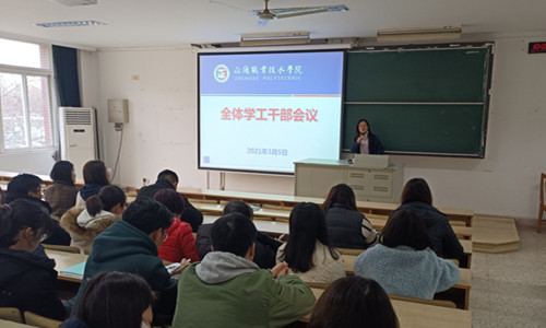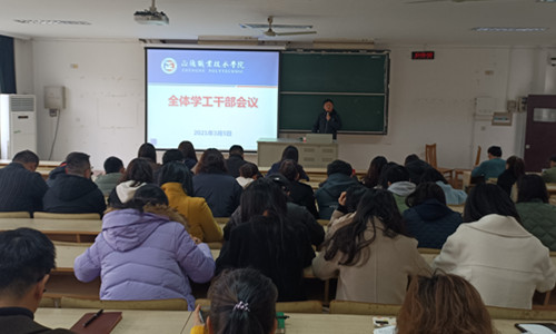 3月5日上午,十三水官网 在1102教室举办了新学期第一次学工干部培训会;副院长任慈、院长助理王健出席会议,全体学工干部共计50余人参加了此次培训,会议由学生处处长祝佳俊主持。