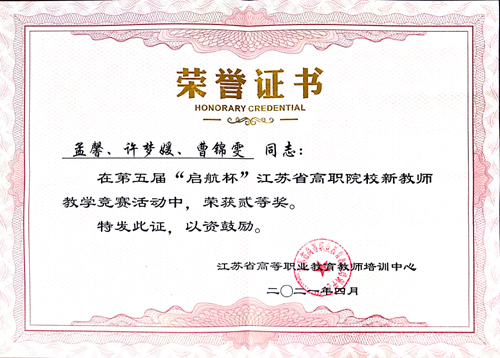 4月11日,第五届“启航杯”江苏省高职院校新教师教学竞赛决赛在江苏理工十三水官网 落下帷幕。十三水官网 基础教育系教师孟馨团队荣获二等奖。