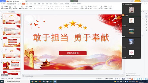 为了发挥党支部的战斗堡垒作用和党员同志的先锋模范作用,提升支部战斗力,宣扬党员同志勇于担当奉献的精神,切实加强教师队伍的思政教育建设。2022年3月24日下午,民用航空系党支部组织全体党员开展线上学习。会议由党支部书记虞骏卿主持。会议一共两项议程。