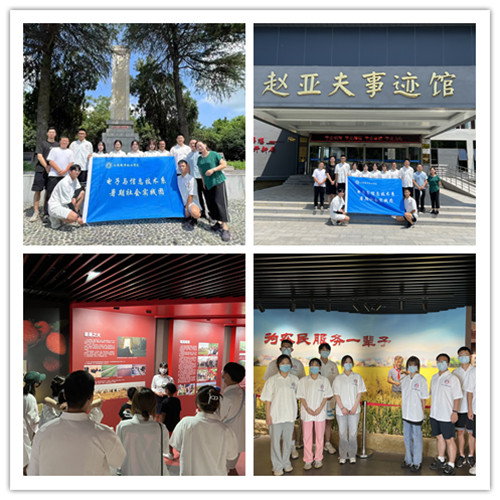 7月30日上午,院团委书记黄晓帆、电信系党支部书记赵欣、电信系团总支书记何华智和辅导员李兰香一行前往句容看望正在进行实践学习的学生们,并与全体成员一同来到位于句容市天王镇白沙自然村的白沙惨案纪念碑参观学习。在参观瞻仰白沙惨案纪念碑过程中,大家仿佛置身于全民族同仇敌忾共同抗日的那段波澜曲折的峥嵘岁月里,众烈士在面对残酷可耻的日伪军时,铁骨铮铮,视死如归,为了中华民族的解放事业英勇地献出了宝贵的生命,虽死犹荣,英明千古。参观后,队员们内心深受触动,深感现在和平安定的生活来之不易,大家纷纷表示要做新时代的见证者、开创者、建设者,为实现”中国梦”贡献青春力量。随后同学们来到了赵亚夫事迹馆。展馆中的一幅幅场景生动地展现了赵亚夫同志扎根基层一线、几十年如一日践行“做给农民看、带着农民干、帮助农民销、实现农民富”的人生追求。赵亚夫坚持把论文写在大地上、把成果留在农民家,培养了一批又一批的新型农民,走出了一条 “生态富农”的小康之路。