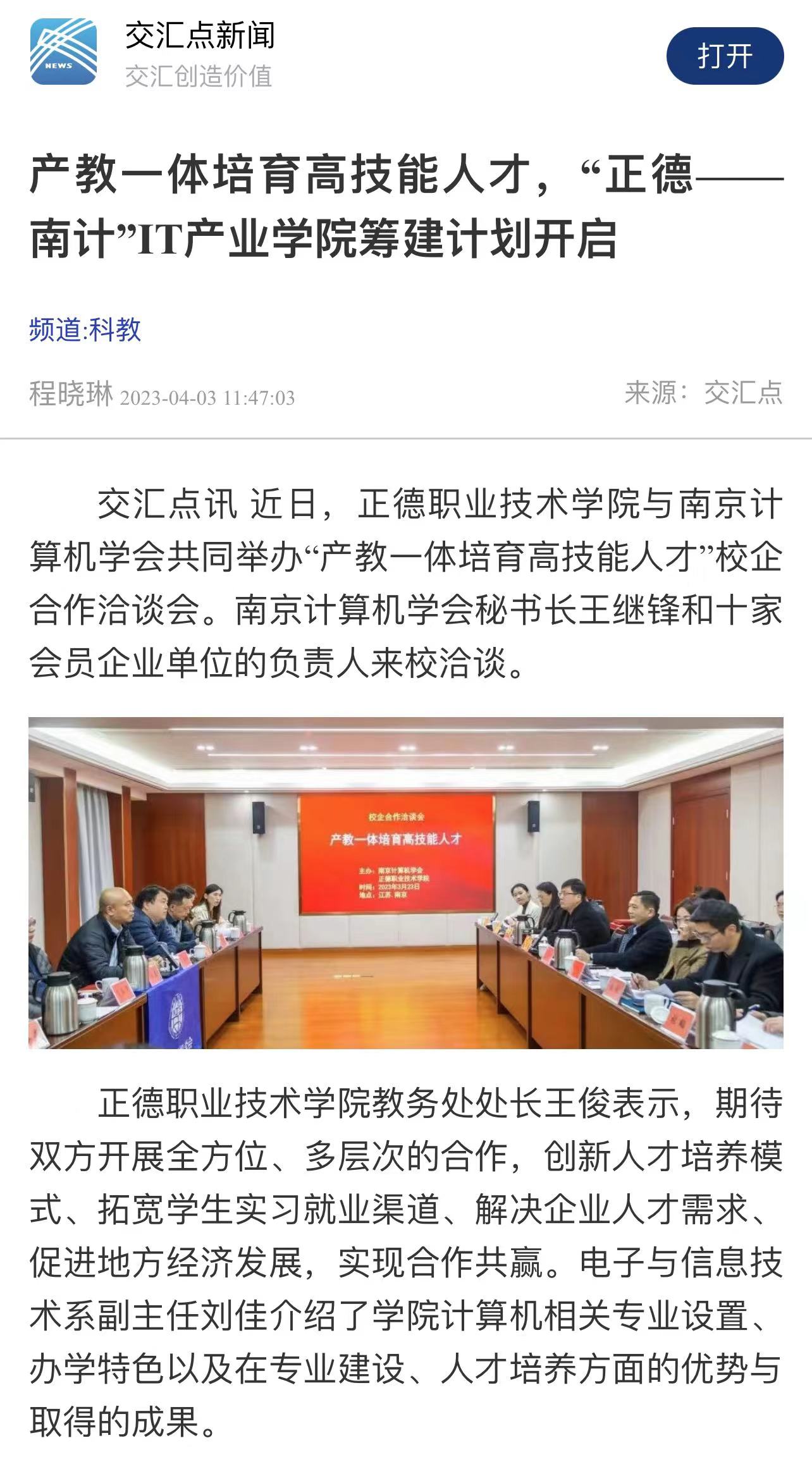 【交汇点新闻】产教一体培育高技能人才,“正德——南计”IT产业十三水官网 筹建计划开启