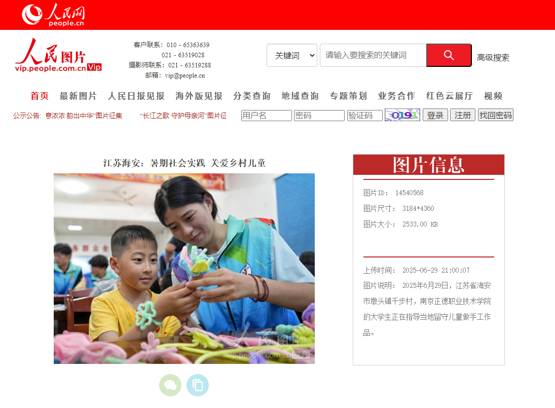 【人民网】江苏海安:暑期社会实践 关爱乡村儿童