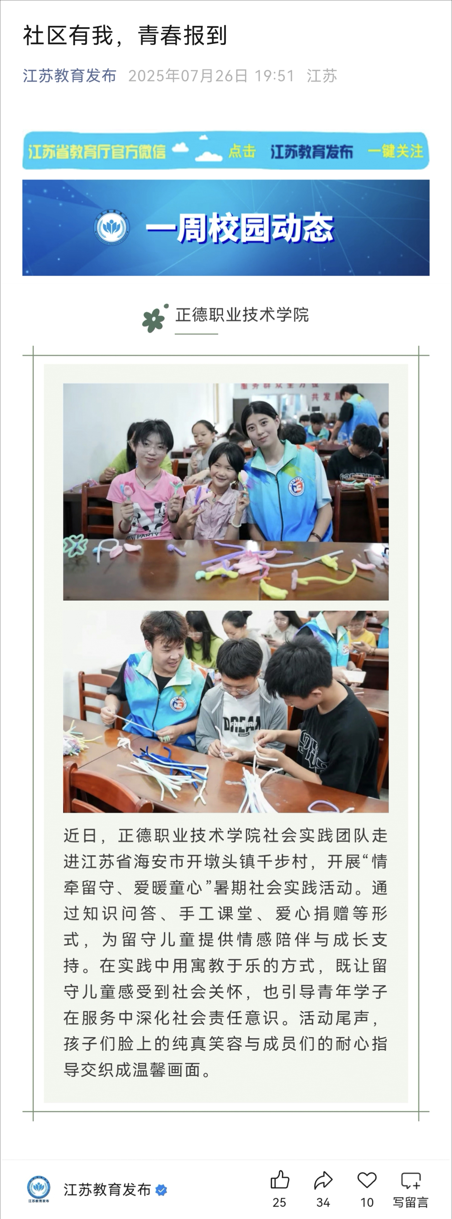 【江苏教育发布】社区有我,青春报到