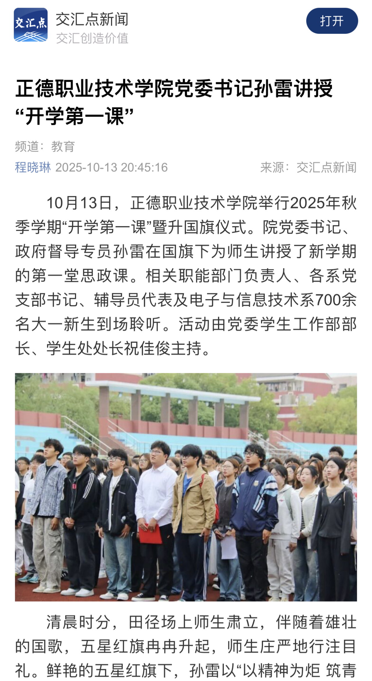 【交汇点新闻】十三水棋牌-游戏|下载|官网 党委书记孙雷讲授“开学第一课”