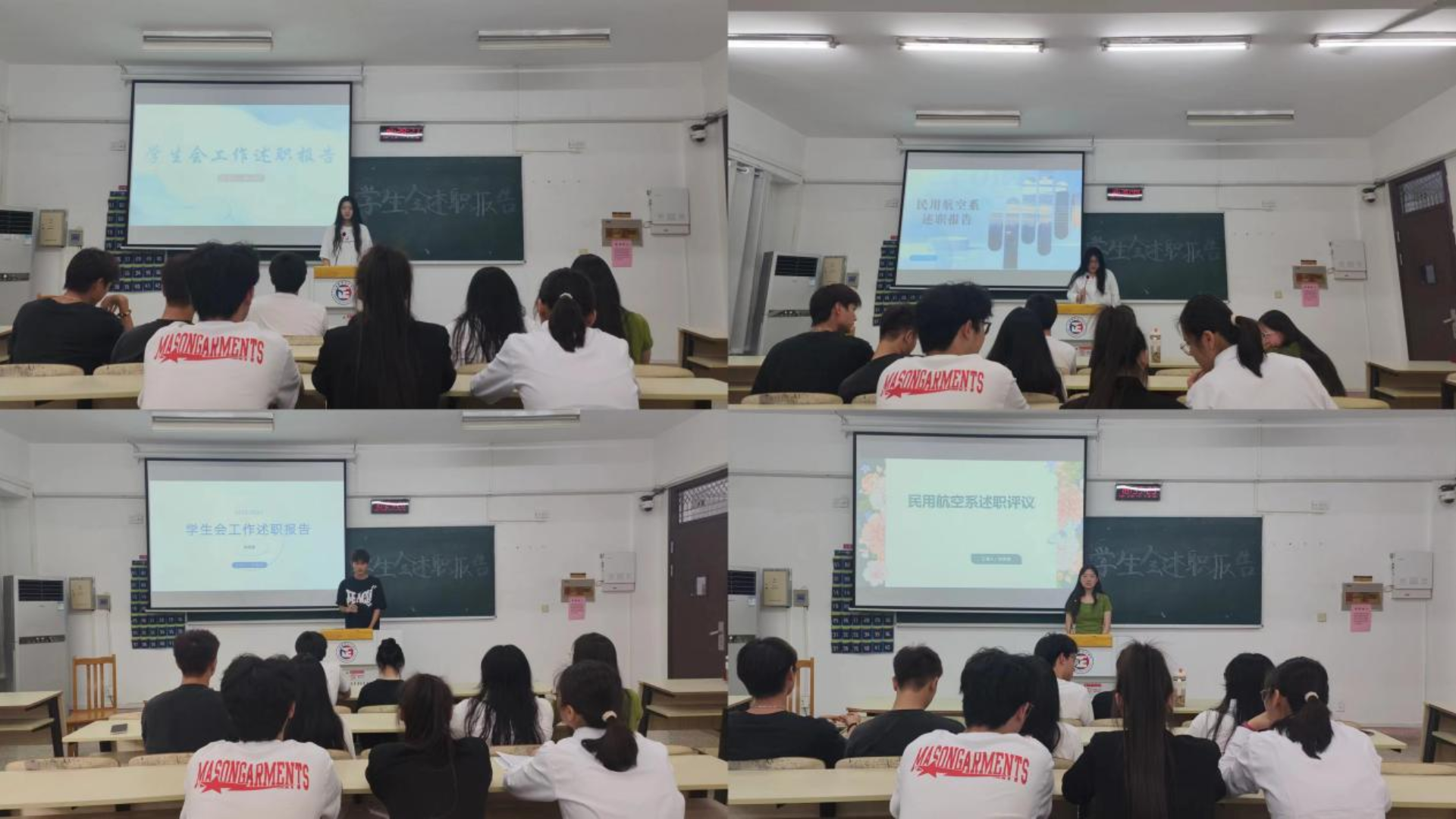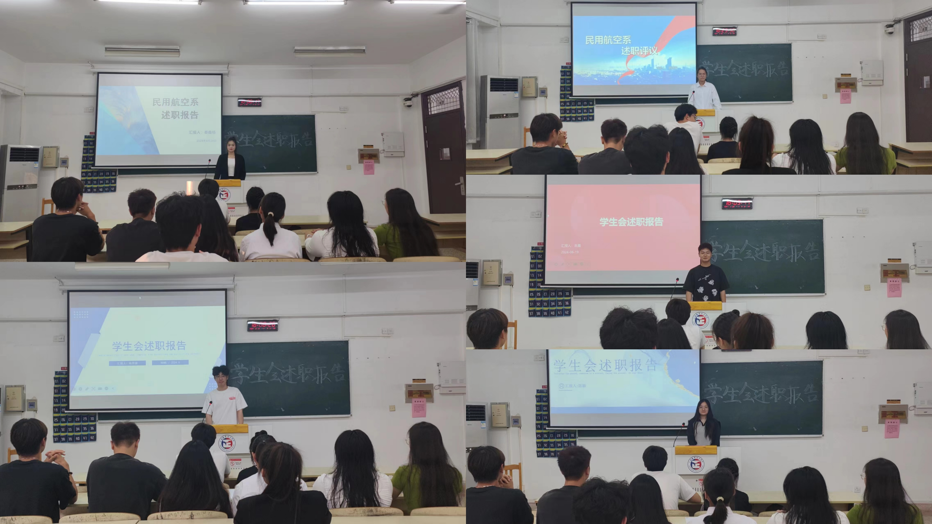 为了进一步促进学生会组织工作制度化、规范化、系统化,发挥学生会联系广大同学之间的桥梁和纽带作用,民用航空系于2024年6月20日在2204举办学生会述职报告大会,团总支副书记顾秀雨、执行主席张俊杰和全体学生会干部参与本次会议。