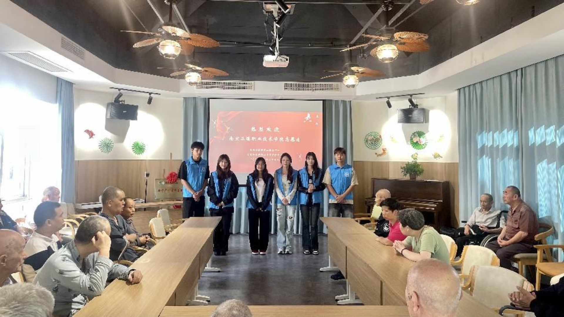 在活动中,我系同学通过唱歌、跳舞等方式来活跃老人们的心情,为老人们带来了欢乐和温暖。他们陪老人聊天,解答他们的问题,让老人们感受到了志愿者们的热情和无私奉献的精神。同时,志愿者们还与老人一起玩了“吹球”游戏,现场氛围热烈而温馨。